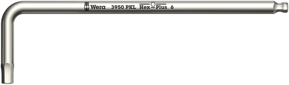 Hoogwaardige stiftsleutel van RVS van Wera voor binnenzeskant-schroeven. RVS voorkomt de overdracht van vliegroest. Het Hex-Plus-profiel is voorzien van grotere contactvlakken met de schroefkop. De kerfwerking en daarmee de deformatie van de schroef worden hierdoor gereduceerd. Voorzien van zeskant-kogelkop aan lange zijde: Dankzij de kogelvormige aandrijfprofielen is het mogelijk om de gereedschapsas t.o.v. de hartlijn van de schroef naar buiten te verleggen of te zwenken, waardoor het ook mogelijk wordt om ‘om de hoek‘ te schroeven.