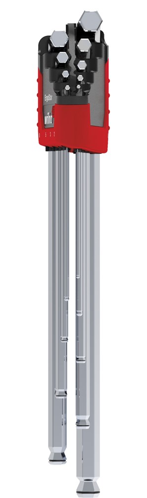 Wie kent dat niet? Bij veel stiftsleutelhouders kost het de nodige moeite om individuele sleutels uit te nemen of weer in de houder terug te steken. Daar maakt de Wiha ErgoStar nu een einde aan, want die lost dit probleem geniaal op. Wanneer één stiftsleutel in de houder wordt gedraaid, draaien alle andere sleutels onder dezelfde hoek opzij waardoor snel en comfortabel uitnemen mogelijk wordt. Een klemvoorziening zorgt ervoor, dat de sleutels zowel bij gesloten als geopende houder er niet uit kunnen vallen. Dankzij de MagicRing-klemveer van roestvrij staal houden de stiftsleutels alle standaard zeskantschroeven onafhankelijk van het materiaal van de schroef in elke stand perfect vast. Zo wordt het verwijderen van verzonken schroeven en het insteken en vastschroeven van schroeven onder een hoek tot 25° kinderspel.