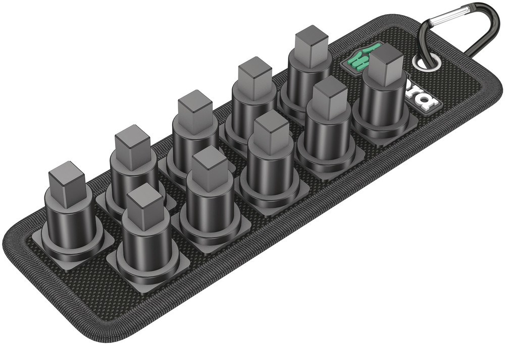 Robuuste stoffen riem (belt) in karakteristiek Wera design voor max. 10 VDE bit-doppen en dit alles uiterst compact. Een soepel werkend draaimechanisme maakt veilig opbergen en makkelijk verwijderen van de doppen mogelijk. Inclusief karabijnhaak voor bevestiging aan broekriemlus of tassen. Achterzijde van vliesstof en klittenbandsegment voor eenvoudige bevestiging aan bijvoorbeeld wanden, rekken, gereedschapswagens en het gereedschapstransportsysteem Wera 2go.