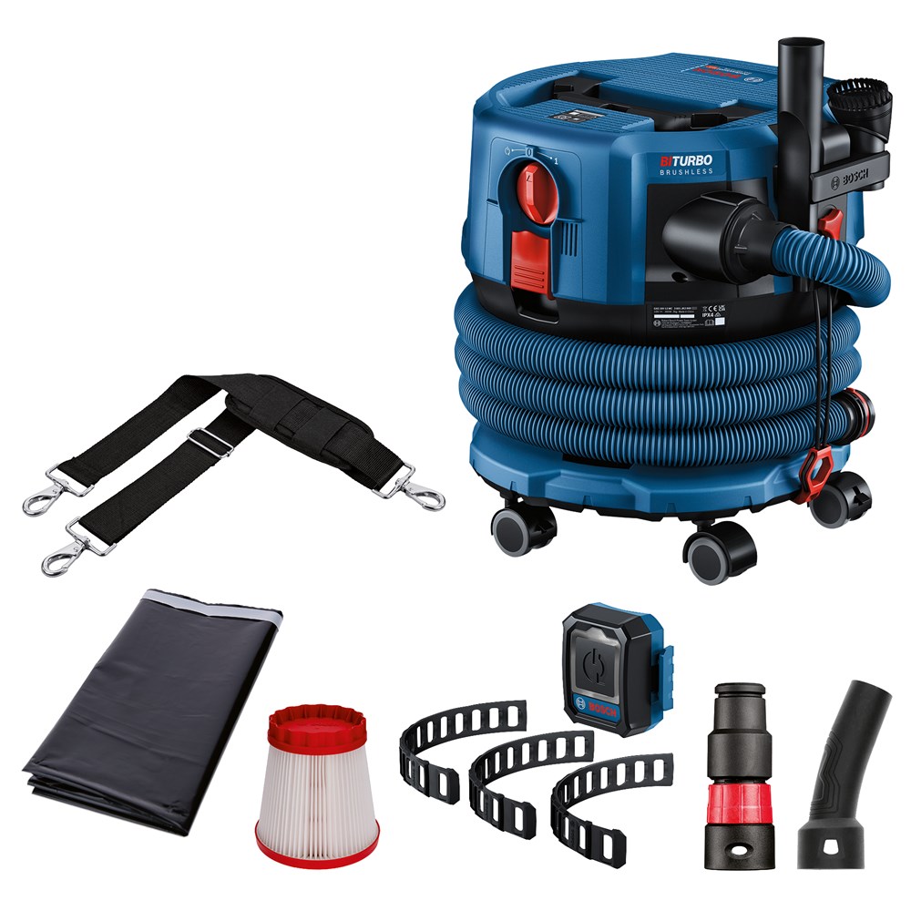 De accustofzuiger GAS 18V-12 MC garandeert stofbeveiliging van klasse M. Deze pakt een groot aantal soorten stof op de bouwplaats aan – beton, stenen, vulmiddel, gips, tegelspecie en meer. De innovatieve, elektrostatische ontladingsoplossing (ESD) leidt een elektrische oplading automatisch af, en de Auto-Start-functie zorgt voor bediening van de stofzuiger, zodat u zich kunt focussen op de klus. Bevestig eenvoudig de Auto-Start-zendmodule op uw gereedschap en koppel deze met de GAS 18V-12 MC. Na het koppelen detecteert de Auto-Start-functie de trillingen van het gereedschap tijdens werking en start en/of stopt de stofzuiger automatisch. De krachtige BITURBO Brushless-motor en de grotere filter zorgen voor een superieure zuigcapaciteit voor alle veeleisende klussen, allemaal met slechts één 18V-accu.