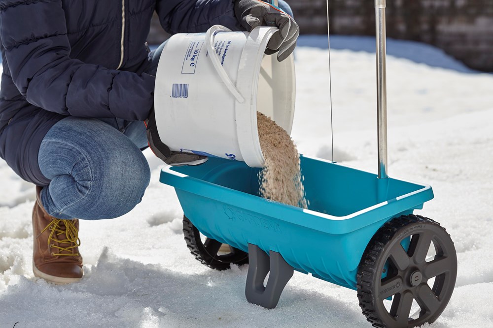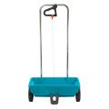 Contacteer onsDe Strooiwagen L van GARDENA kan het hele jaar door worden gebruikt voor het verspreiden van uiteenlopende materialen, zoals meststoffen, zaad, granulaat, zand of strooizout. U gebruikt hem net zo gemakkelijk om middelgrote gazons te bemesten (tot 400 m²) als om in de winter strooizout te verspreiden. De dosering van het strooigoed wordt via een open/sluit-functie op de ergonomisch ontworpen handgreep nauwkeurig ingesteld. Hiermee stelt u de gewenste hoeveelheid van het strooigoed in zonder te hoeven bukken. De speciale verspreidingsrol garandeert gelijkmatige verdeling en dankzij de gepatenteerde afsluitstrip is er geen onbedoeld morsen of lekken van materiaal. Dankzij de grote profielwielen met kogellagers is de strooiwagen gemakkelijk over uiteenlopend terrein te rijden en hebt u altijd goede grip en optimale tractie. De wagen is van robuuste materialen vervaardigd, zoals een stevige aluminium beugel, een roestvrijstalen draad en hoogwaardige kunststof. Hierdoor raakt hij niet gemakkelijk beschadigd en is corrosiebestendig. Eenvoudig met een tuinslang afspuiten is afdoende om de strooiwagen te reinigen. GARDENA biedt een garantie van 5 jaar op de Strooiwagen L.