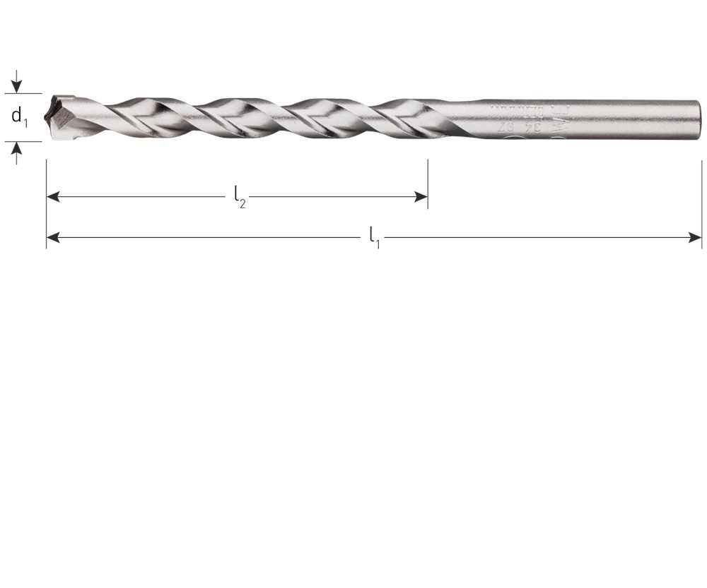 Boor is vervaardigd uit hooggelegeerd Chroom-Vanadium staal. Door de speciaal geslepen spiraal is een hoge boorsnelheid en gruistransport mogelijk. De soldering van het hardmetalen plaatje is bestand tegen temperaturen boven 1000°C. Hamervast. Alle boren boven ø13 zijn standaard afgedraaid naar schacht ø13.