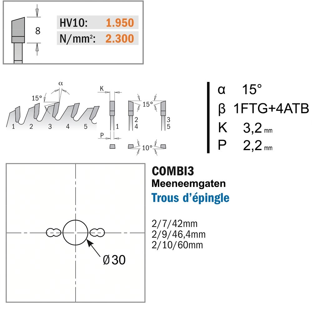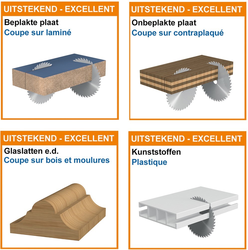 Materiaal: alle houtsoorten en op hout gebaseerde plaatmaterialen, éénzijdig beplakte plaat, met melaminepapier gelamineerd plaatmateriaal, thermoplastische kunststoffen.