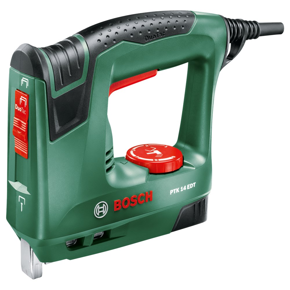 Deze veelzijdige tacker biedt comfort en uitzonderlijke aanpasbaarheid om bevestigen ongelooflijk eenvoudig te maken. Het wisselen tussen dubbele en enkele nieten is eenvoudig met de DuoTac-schakelaar om te voldoen aan de individuele eisen van elke klus. Elektronische slagkrachtinstelling zorgt afhankelijk van het materiaal voor de perfecte mate van vermogen. Het Push + Release systeem verhoogt zowel de veiligheid als controle door zelfactivatie uit te sluiten. De PTK 14 EDT is ideaal voor het bevestigen van zachte, dunne materialen op hout. Dankzij het nietmagazijn met bijvulaanduiding behoort onverwacht zonder nieten of spijkers te komen zitten tot het verleden.