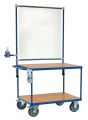 Contacteer onsStalen buis en gelast profielstaal, gepoedercoat RAL 5007. 2 Platformen van houten plaat, toplaag beukendecor. 2 Zwenk- en 2 bokwielen, TPE rubber, naaf met kogellager. Zwenkwielen met rem, conform EU-norm EN 1757-3 (veiligheidsnorm voor platformwagens). Draagvermogen bovenste etage 200 kg. Ook uitgerust met infectie preventiescherm 5901, houder voor desinfectiemiddel 1393-B0500 (voor Bode-fles van 500 ml) en spuitfleshouder 1391. Flessen niet bij de levering inbegrepen.