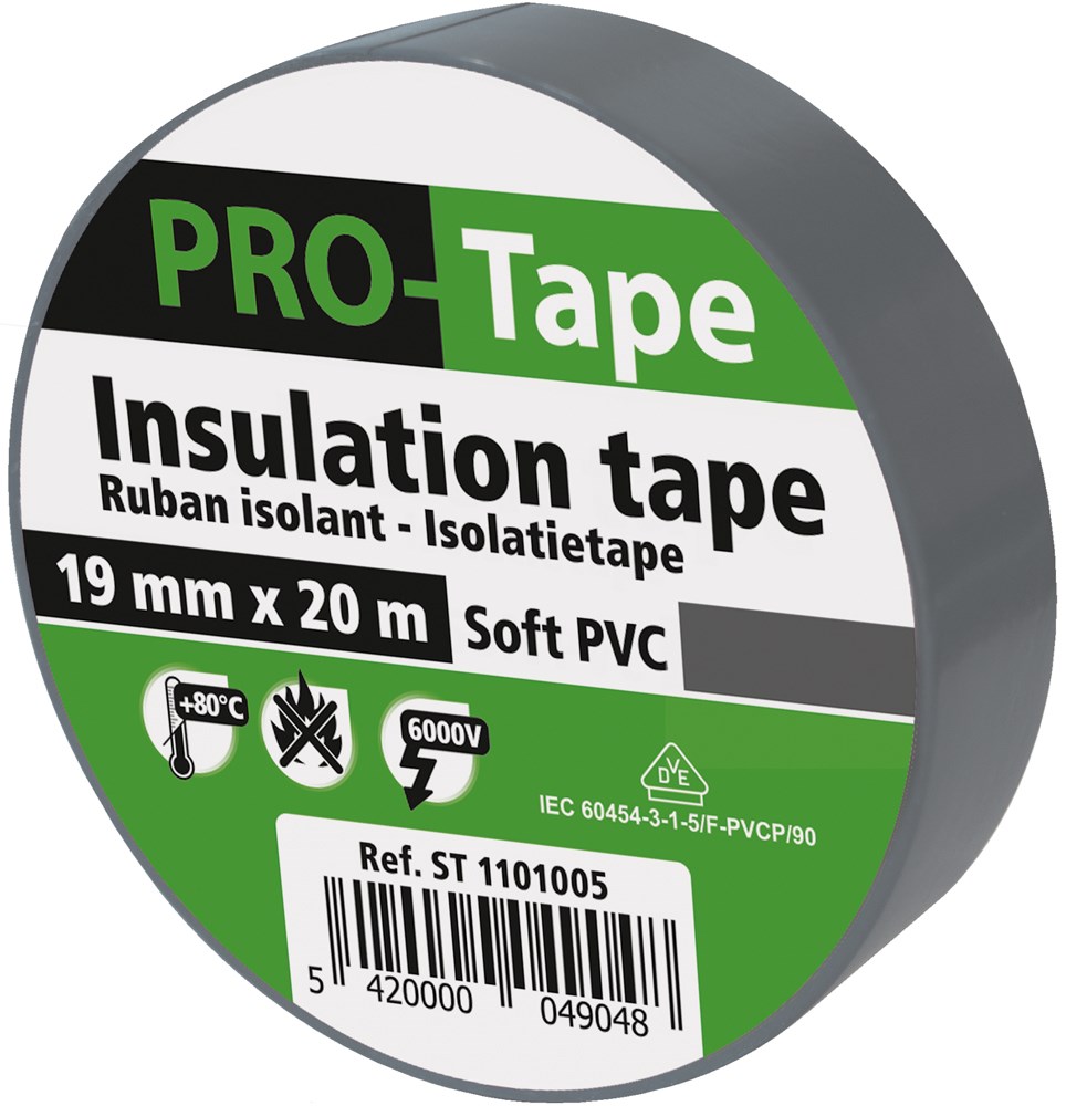 Contacteer onsPROTAPE Artikelnummer: PPST 1001027 ISOLATIETAPE 19 MM X 20M X 0.15MM. VDE / GRIJS