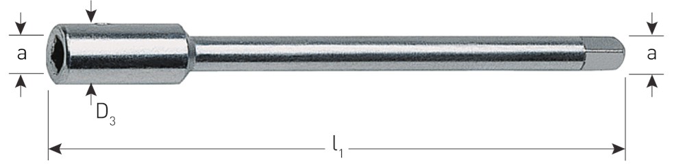 Tapverlengstuk, DIN 377, vierkant volgens DIN 10, cilindrische schacht, gehard en geslepen.