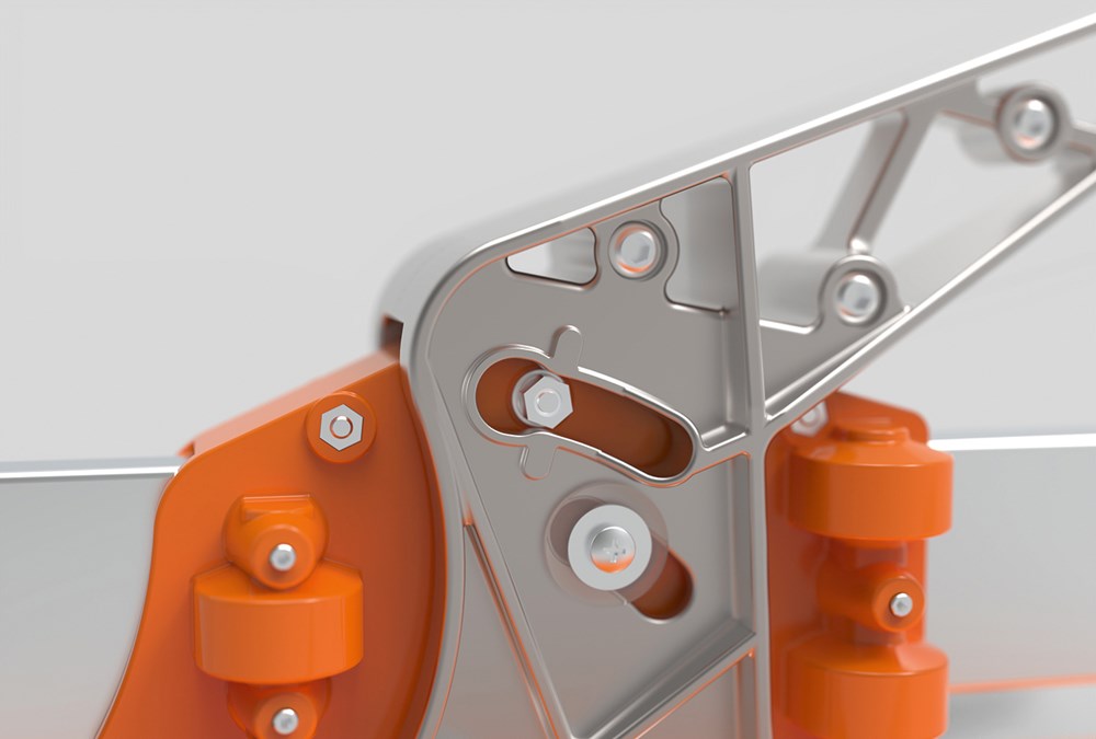 Aluminium schuifarm met 9 kogellagers voor een uiterst vloeiende en nauwkeurige beweging.