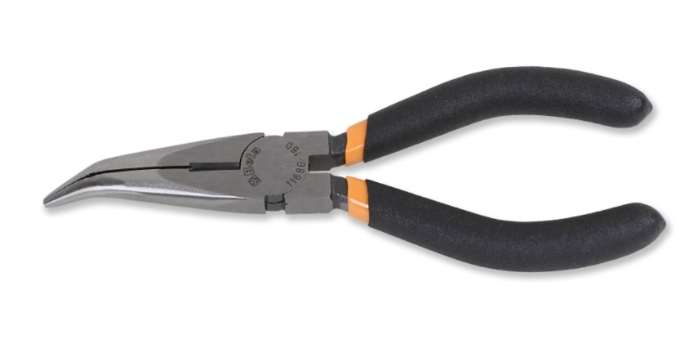 Contacteer onsTelefoontangen, lange gebogen halfronde bekken, handgreep voorzien van dubbel gelaagde anti slip PVC, industriële afwerking