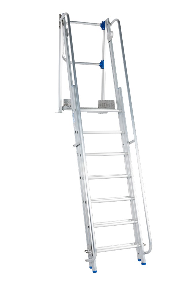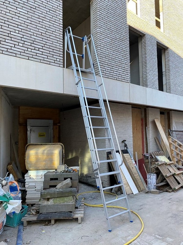 Contacteer onsOns toegangsplatform is speciaal ontworpen voor het veilig betreden van bouwwerven, verdiepingen en meer. Dankzij de stevige leuningen aan beide zijden en het zelfsluitende deurtje geniet je van een volledig afgesloten en veilige toegang.