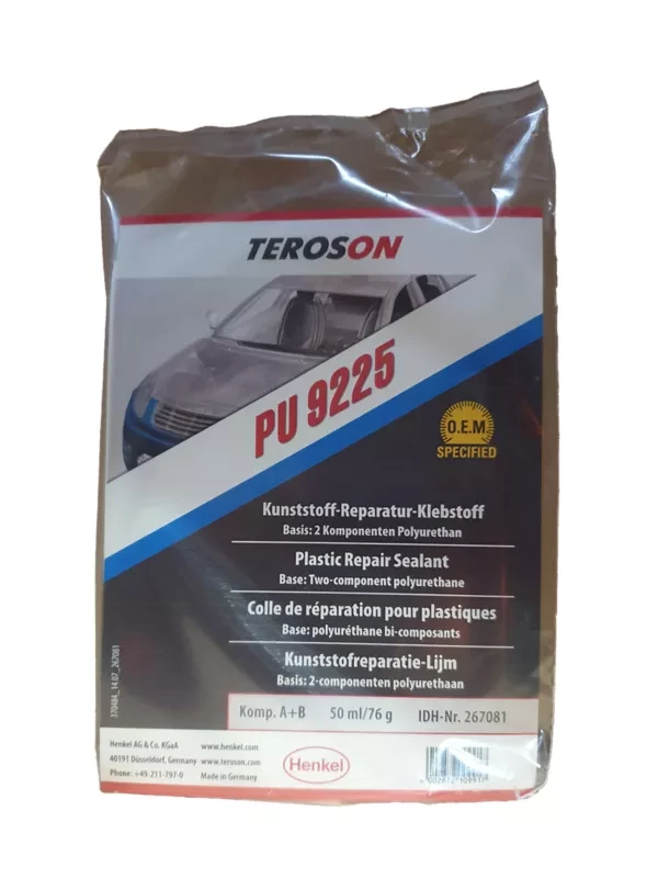 Contacteer onsTEROSON® PU 9225 is een tweecomponenten polyurethaanreparatielijm. Het wordt meestal gebruikt voor reparaties aan overschilderbare kunststofonderdelen binnen en buiten, in het bijzonder voor beschadigingen zoals krassen of gaten in bumpers, spoilers, schorten, enz. Het product kan worden uitgehard met infrarood licht bij 60 °C of met Flexitherm-verwarmingskussens. Eenvoudige toepassing met het TEROMIX® HAND GUN (patronen van 50 ml) of TEROSON® ET STAKU HAND GUN (patronen van 250 ml) en geschikte statische menger. Vóór het aanbrengen worden oppervlaktereiniging met TEROSON® VR 10 en priming met TEROSON® VR 155 aanbevolen. TEROSON PU 9225 hardt uit bij kamertemperatuur, maar versnelde uitharding is mogelijk met infraroodwarmte bij 60 °C .