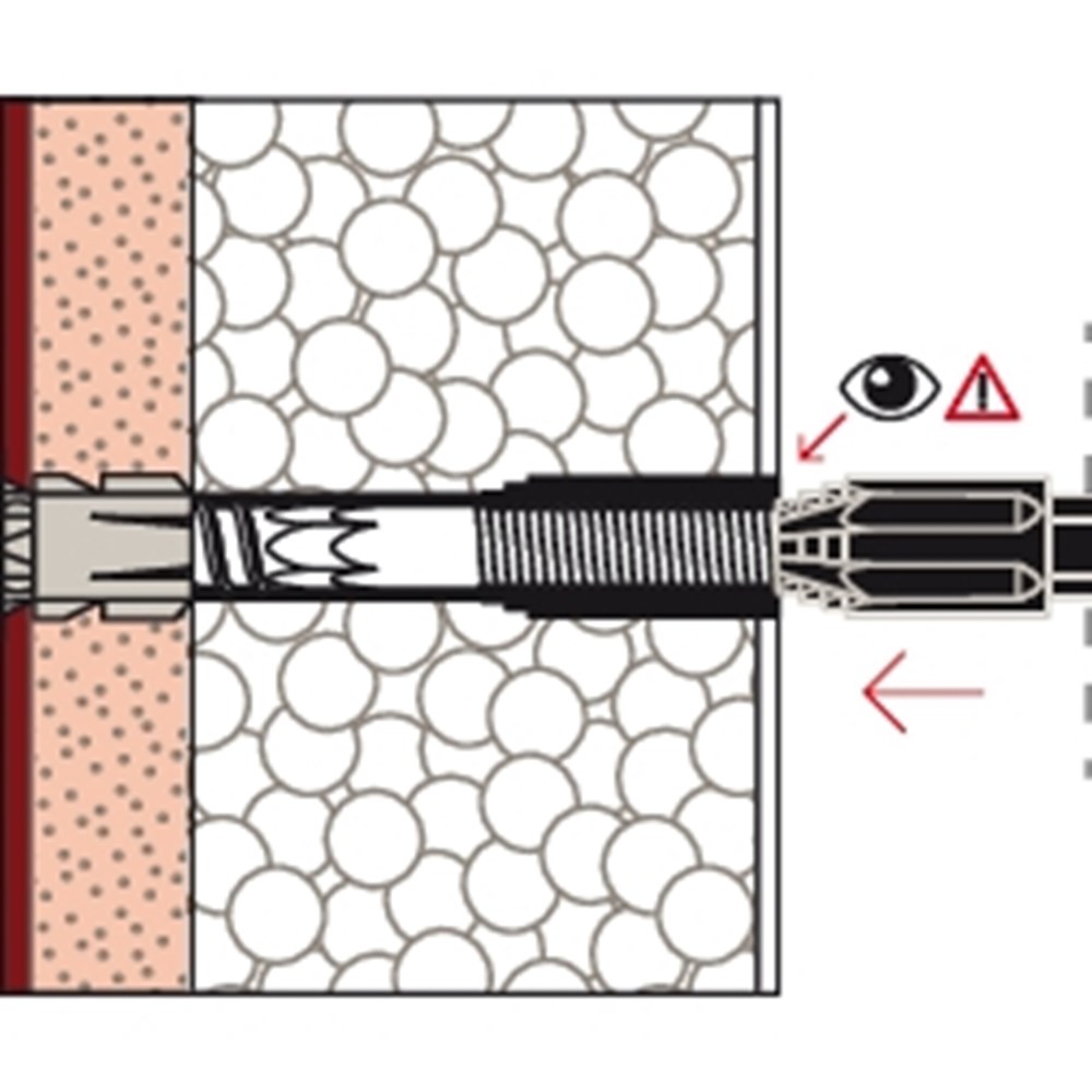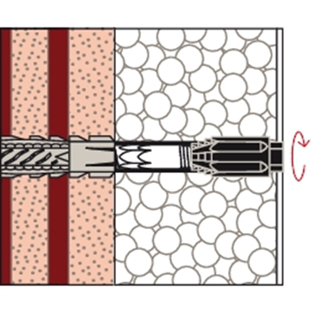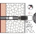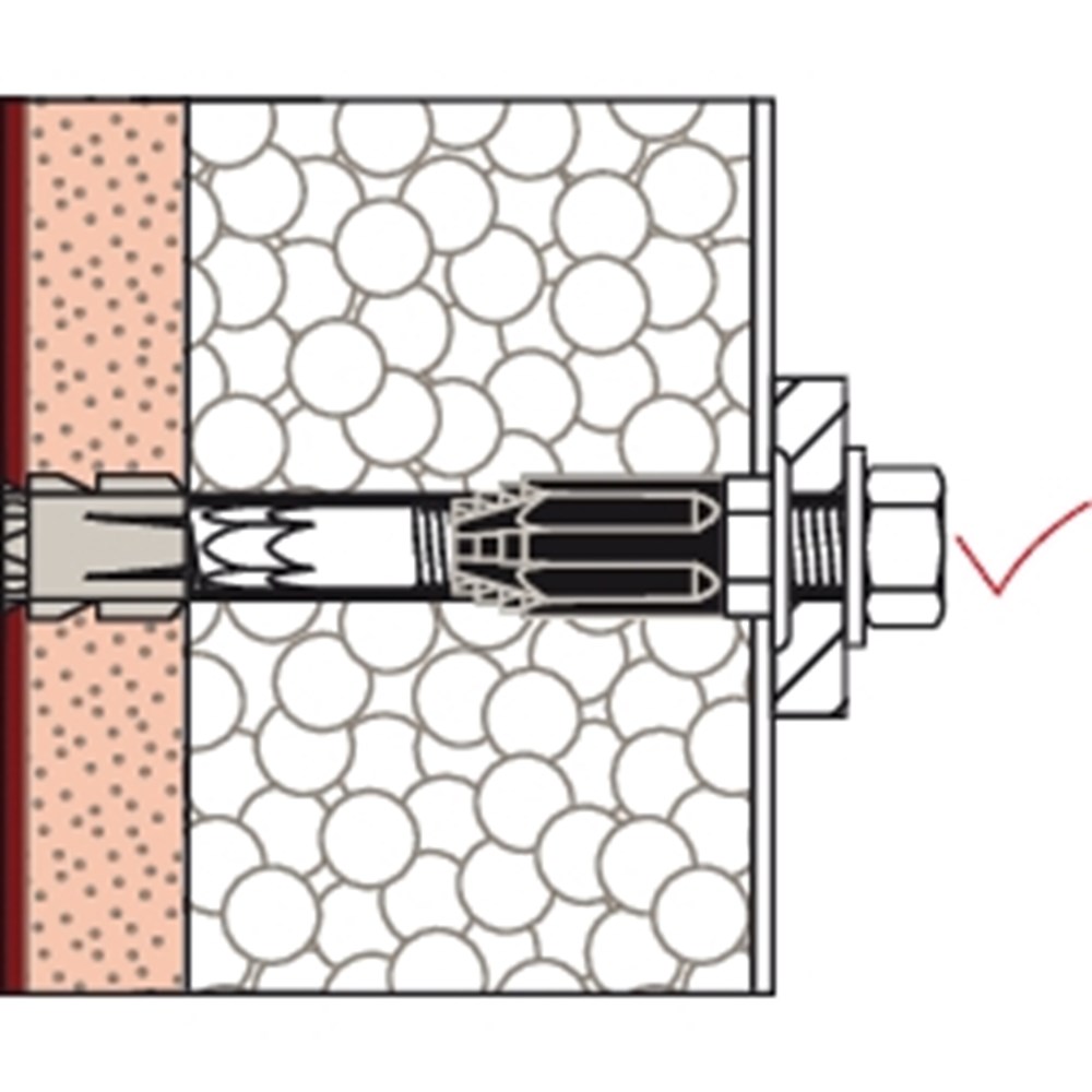 Contacteer onsHet fischer Afstandsmontagesysteem TherMax 10 is een oplossing voor een bevestiging in de buitenmuur of warmtebrug in de WDVS. De stokschroef met de glasvezelversterkte conus freest zich automatisch door de pleister in het isolatiemateriaal. De stokschroef wordt bij de montage in de Universeelplug UX gedraaid en verankert zo stevig in het bouwmateriaal. De anti-koude-conus op de kop van de stokschroef onderbreekt de warmtebrug en neemt de buitenste bevestiging op. De TherMax bevestigt lichte lasten zoals lampen, brievenbussen of bliksemafleiders in beton, cellenbeton en metselwerk van volle en geperforeerde baksteen.