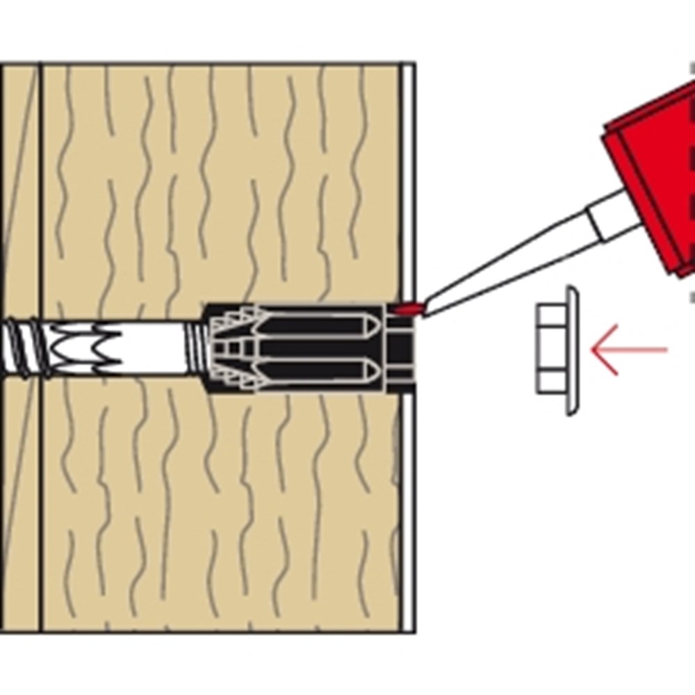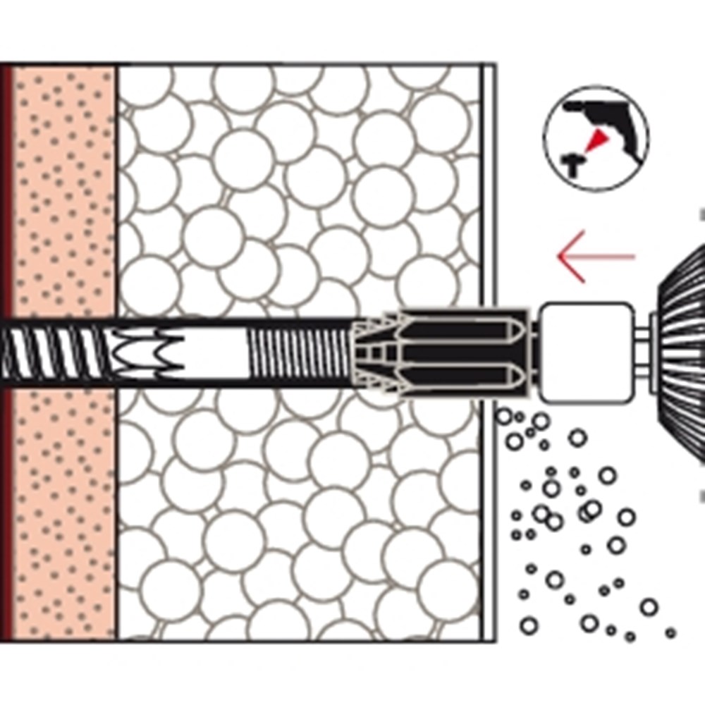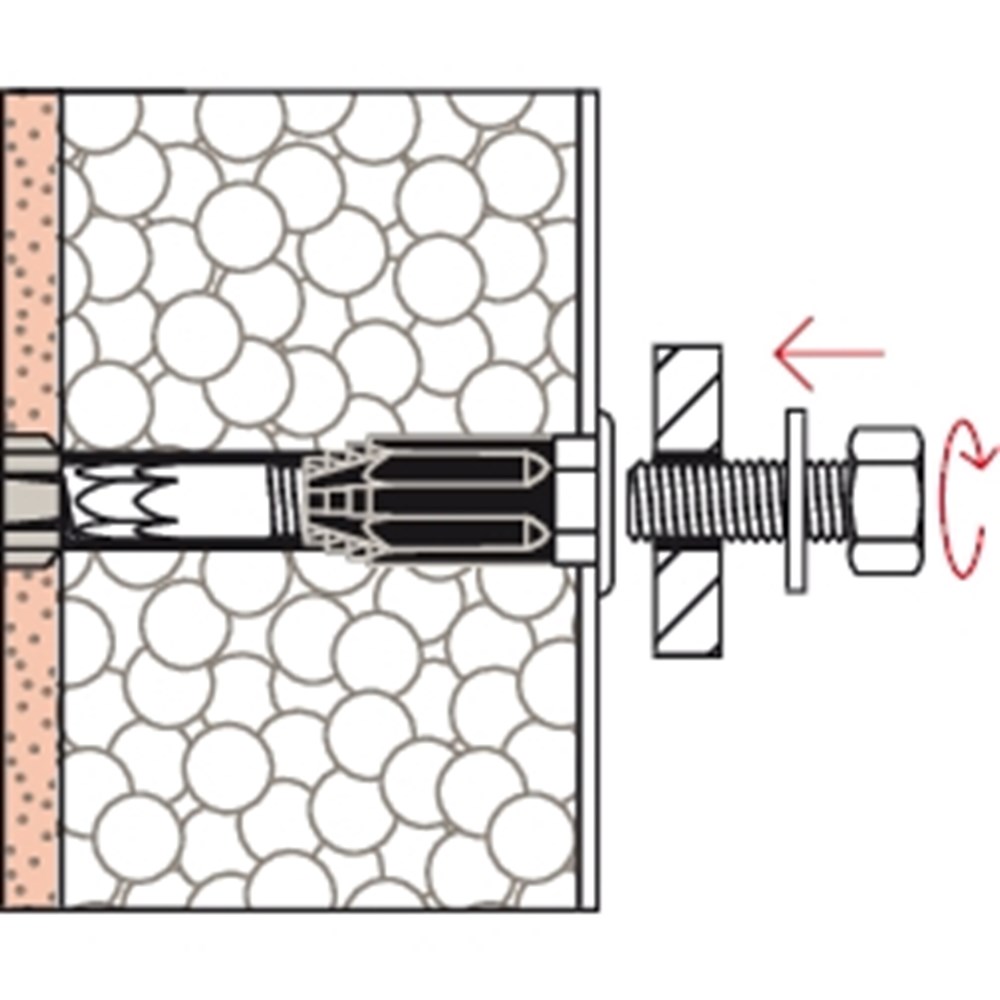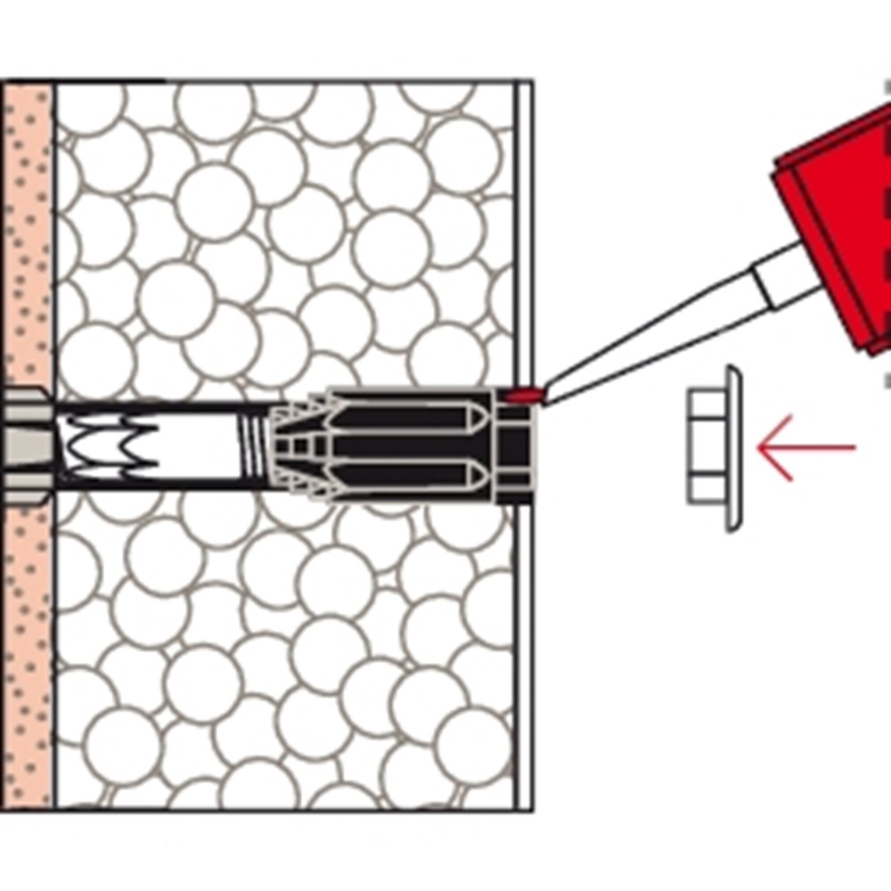 Contacteer onsHet fischer Afstandsmontagesysteem TherMax 10 is een oplossing voor een bevestiging in de buitenmuur of warmtebrug in de WDVS. De stokschroef met de glasvezelversterkte conus freest zich automatisch door de pleister in het isolatiemateriaal. De stokschroef wordt bij de montage in de Universeelplug UX gedraaid en verankert zo stevig in het bouwmateriaal. De anti-koude-conus op de kop van de stokschroef onderbreekt de warmtebrug en neemt de buitenste bevestiging op. De TherMax bevestigt lichte lasten zoals lampen, brievenbussen of bliksemafleiders in beton, cellenbeton en metselwerk van volle en geperforeerde baksteen.