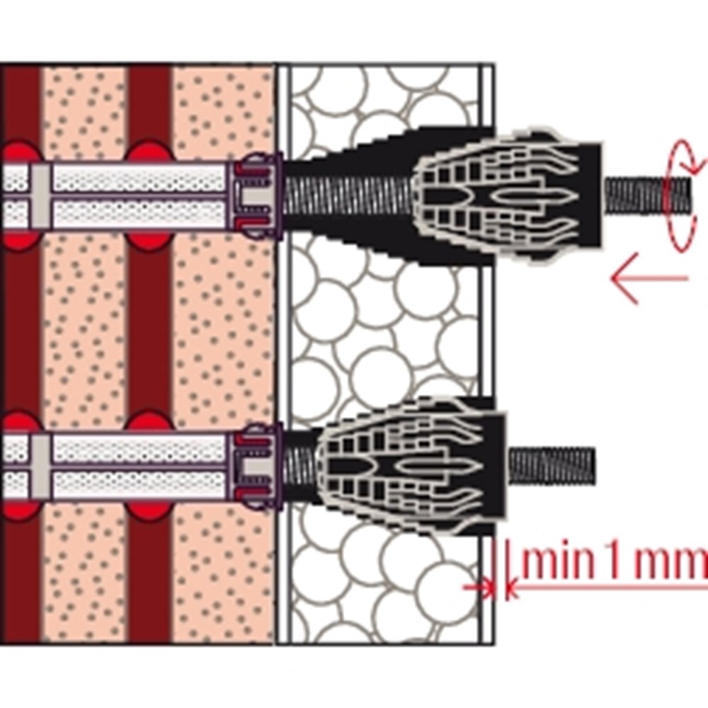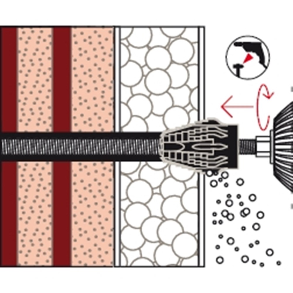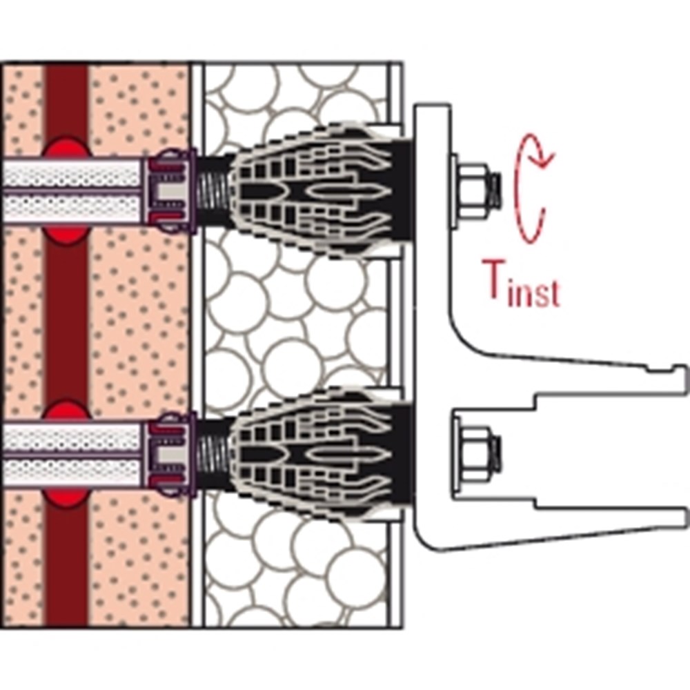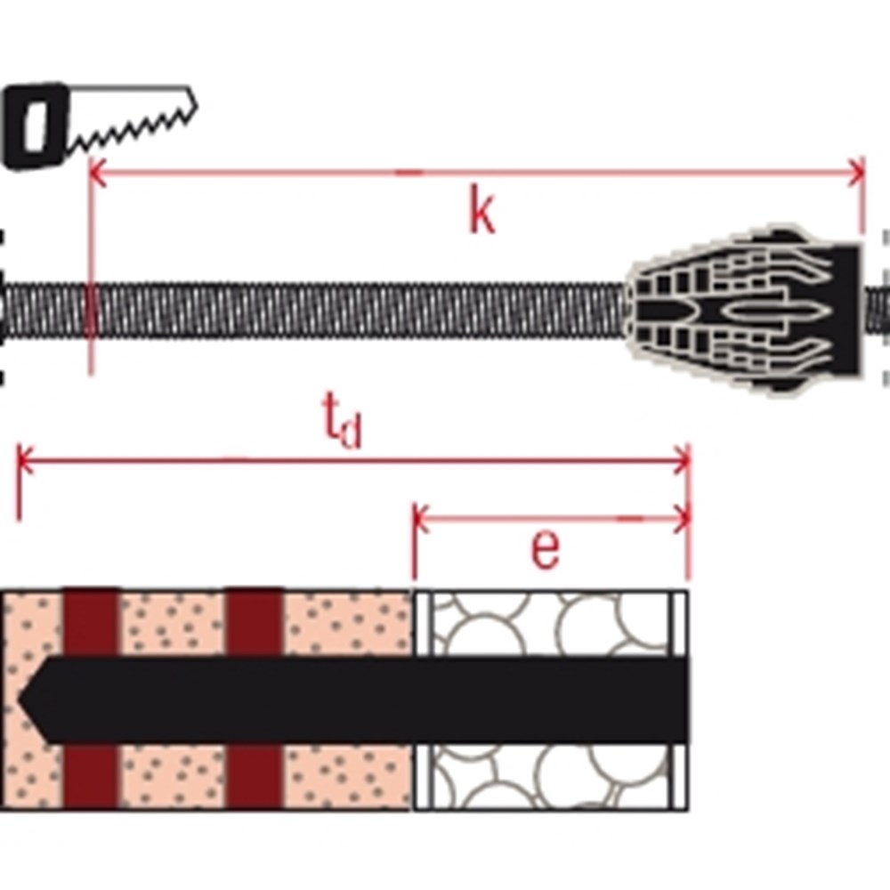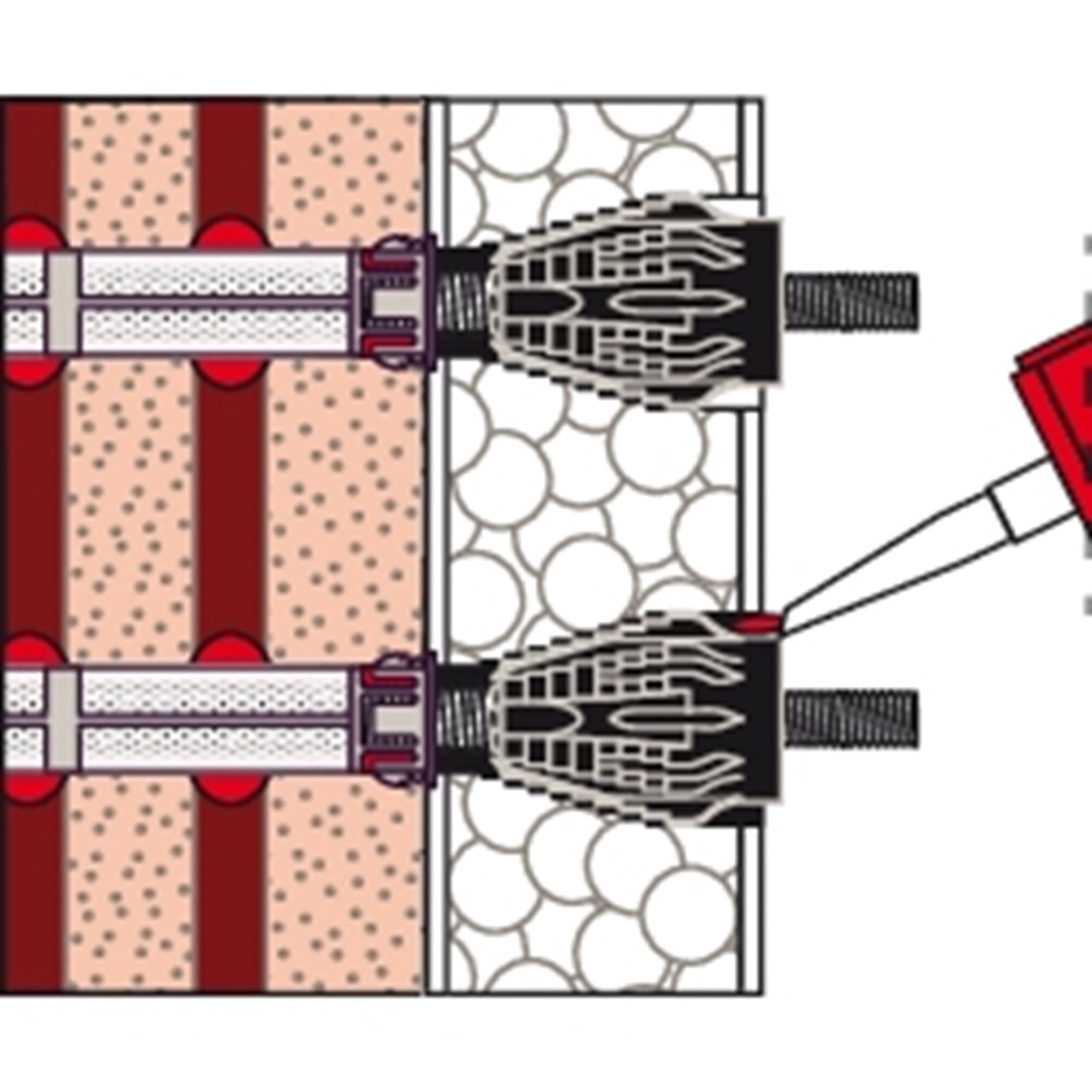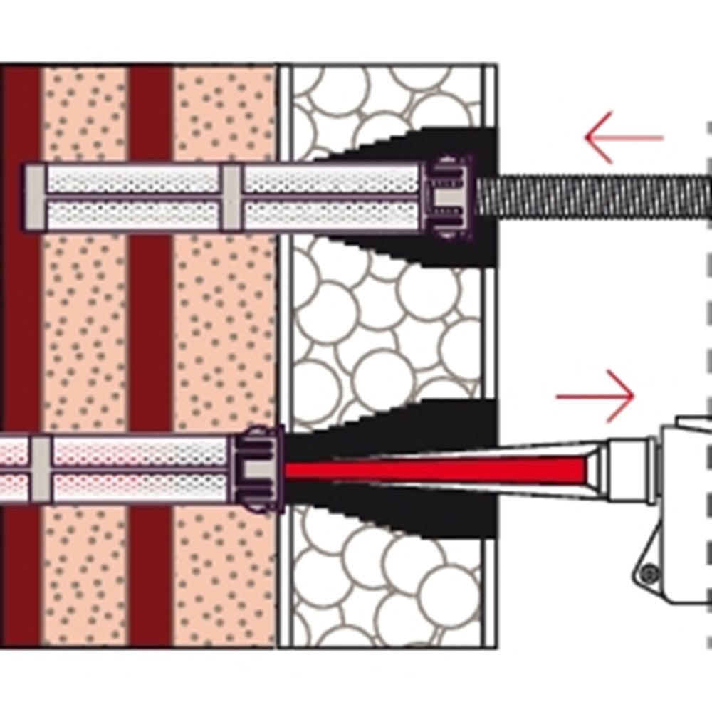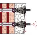 Contacteer onsHet fischer Afstandsmontagesysteem TherMax is een oplossing voor een bevestiging in de buitenmuur of warmtebrug in de WDVS. Het systeem bestaat uit een speciale draadstang van gegalvaniseerd staal met een glasvezelversterkte conus, tapeinden en injectiehulzen voor de bevestiging in geperforeerde baksteen. In combinatie met de fischer Krachtige mortel FIS EM Plus, FIS V, FIS SB en de FIS GREEN is het systeem goedgekeurd voor talrijke bouwmaterialen. De draadstang met de glasvezelversterkte conus freest zich automatisch door de pleister in het isolatiemateriaal. De draadstang wordt in de injectiehuls met een injectiemortel in het bouwmateriaal verankerd. De conus op de kop van de draadstang onderbreekt de warmtebrug en neemt het tapeind van roestvast staal voor de buitenste bevestiging op. De TherMax bevestigt zware lasten zoals zonweringen, bewakingsmaatregel en satellietinstallaties in beton, cellenbeton en metselwerk van volle en geperforeerde baksteen.