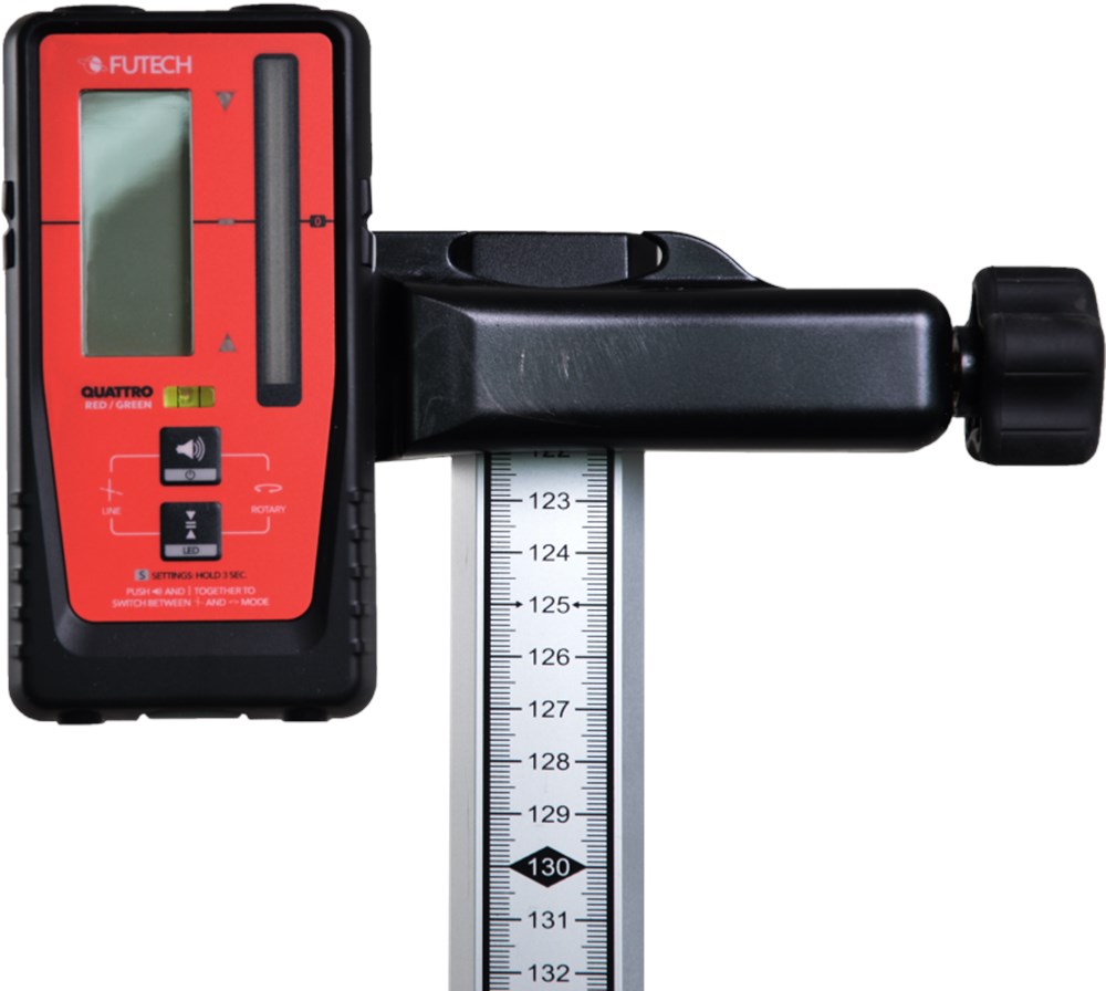 Contacteer onsUitschuifbare baak tot 400cm met E-aanduiding (cm) aan de voorkant en mm-aanduiding aan de achterkant (U kan onderaan lezen hoe hoog de ontvanger boven aan de baak hangt).
