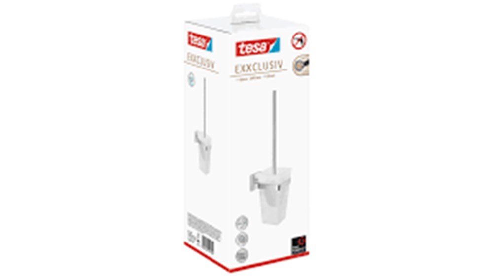 Contacteer onsPrachtig en stijlvol, de tesa® Exxclusiv toiletborstelset is een mooie aanvulling op elke badkamer. De witte matglazen kegelvormige beker steekt mooi af tegen het roestvrij staal van de drager. De beker kan worden verwijderd voor eenvoudige reiniging, de borstelkop kan worden vervangen. De materialen zijn niet alleen ontworpen voor een lange levensduur, maar ook voor een goede hechting, dankzij de tesa® Power.Kit technologie. Boren is niet nodig, de muren blijven intact. De toiletborstel kan weer verwijderd worden, zonder lijmresten. met adapter BK20 kan deze eenvoudig elders worden bevestigd. tesa.Power.Kit Glue: Let op! Bij gebruik kunnen gevaarlijke inhaleerbare stofdeeltjes worden gevormd. Stof niet inademen.