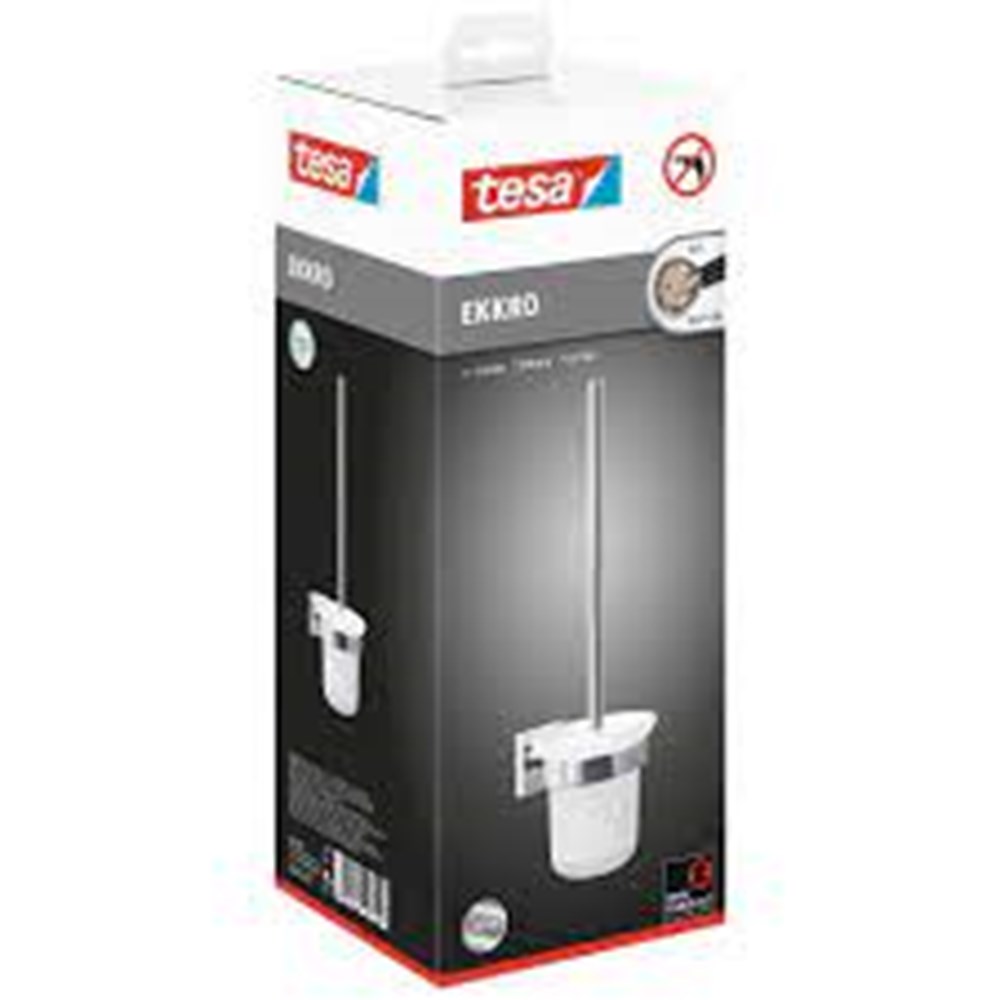 Contacteer onsDe tesa® Ekkro toiletborstel is verchroomd en voorzien van een houder van gesatineerd glas voor de borstel. De glazen houder kan worden verwijderd voor reiniging, en de borstelkop kan worden losgeschroefd. Een adapter wordt met lijm aan de muur bevestigd, zodat het niet nodig is om te boren. Na een droogtijd van 12 uur is de houder stevig bevestigd. De toiletborstelset kan eenvoudig worden verwijderd zonder lijmresten achter te laten of schade aan het oppervlak te veroorzaken en worden verplaatst met adapter BK20. Het bespaart ruimte en past mooi in elke moderne badkamer. tesa.Power.Kit Glue: Let op! Bij gebruik kunnen gevaarlijke inhaleerbare stofdeeltjes worden gevormd. Stof niet inademen.