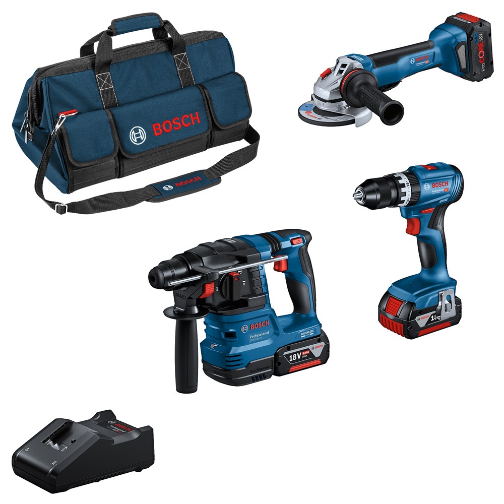 GSB 18V-45, GWS 18V-10, GBH 18V-22, 2x GBA 5.0Ah, 1x ProCORE18V 5.5Ah, lader GAL 18V-40