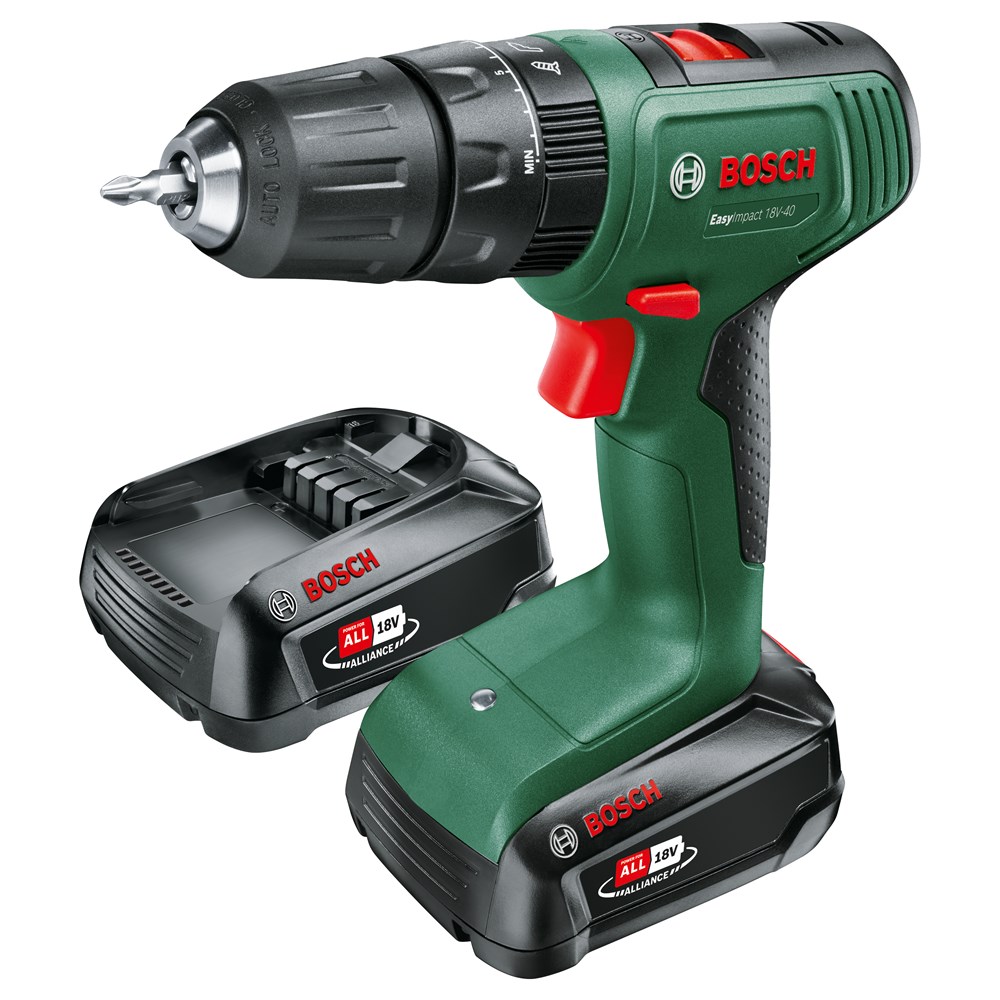 Moeiteloos en flexibel schroeven, boren of klopboren Deze accuschroefklopboormachine EasyImpact 18V-40 is de flexibele allrounder voor een hele reeks boor- en bevestigingsklussen. De machine heeft een aandrijving met twee standen voor snel boren en krachtig schroeven, terwijl de 20 draaimomentstanden zorgen voor maximale precisie bij het schroeven. De eenhulzige boorhouder van 13 mm maakt het wisselen van boren en bits gemakkelijk. Dankzij het ergonomische ontwerp en geïntegreerde LED-licht wordt de klus effectief en comfortabel geklaard, zelfs op slecht verlichte plekken. Deze machine is de juiste keus bij het werken met hout, metaal, kunststof of metselwerk. Het gereedschap maakt deel uit van de POWER FOR ALL ALLIANCE. Eén accu kan een groot aantal machines/apparaten van verschillende merken laten werken.