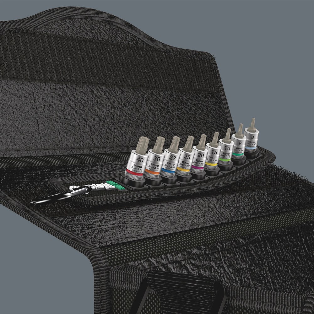 9-delige Bitdoppen set op robuuste stoffen riem, 1/4"