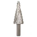 De HSS trappenboor kan met één boor gladde, braamvrije boringen van diverse diameters maken. De boor is ideaal voor het ontbramen, boren van ronde gaten en vergroten van bestaande gaten. Voorponsen is onnodig doordat de gespleten punt een eenvoudige aanboring mogelijk maakt. De CNC-geslepen spiraalgroef biedt een geoptimaliseerde spaanafvoer en minder trilling voor gelijkmatige boringen. Het axiaal en radiaal achterslijpen zorgen voor uitstekende snijprestaties en absolute gladheid. Deze trappenboor is geschikt voor gebruik op dunne materialen, zoals non-ferrometalen, plaatkunststof, plaatstaal, kunststof en roestvrij staal.