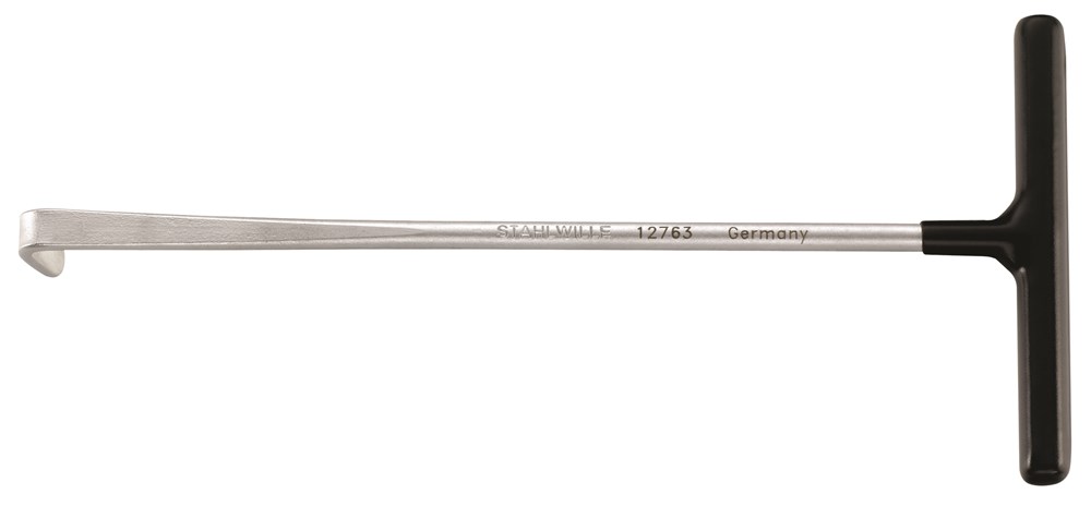 Contacteer onsMet T-greep, verchroomd, met zwarte kunststoffen bekleding, voor het trekken van de uitlaatrubbers over de uitlaatophanging van alle personenwagens, m.u.v. Ford.