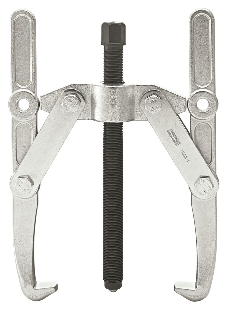Contacteer onsTwee-armig, met zwenkbare, in lengte verstelbare trekhaken, voor grote spanbereiken, verzinkt; voor het lostrekken van tandwielen, kogellagers, v-riempoelies en soortgelijke delen van een as of aandrijfas; te gebruiken als buiten- en binnentrekker; voor gebruik als binnentrekker moeten de haken worden gezwenkt en de spindel omgedraaid; de grote hefboomwerking zorgt voor een vaste zit op het los of uit te trekken deel.