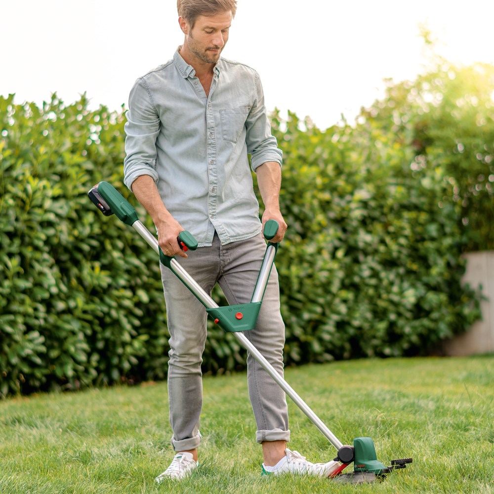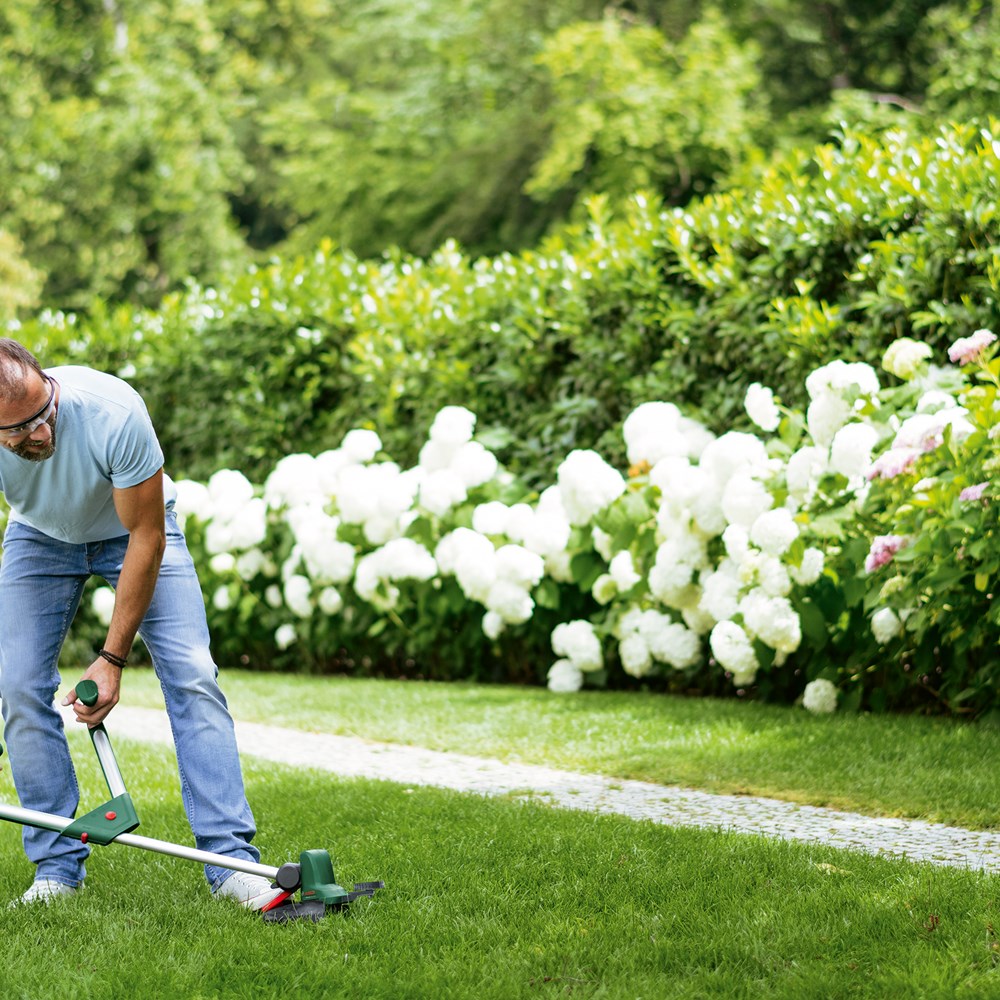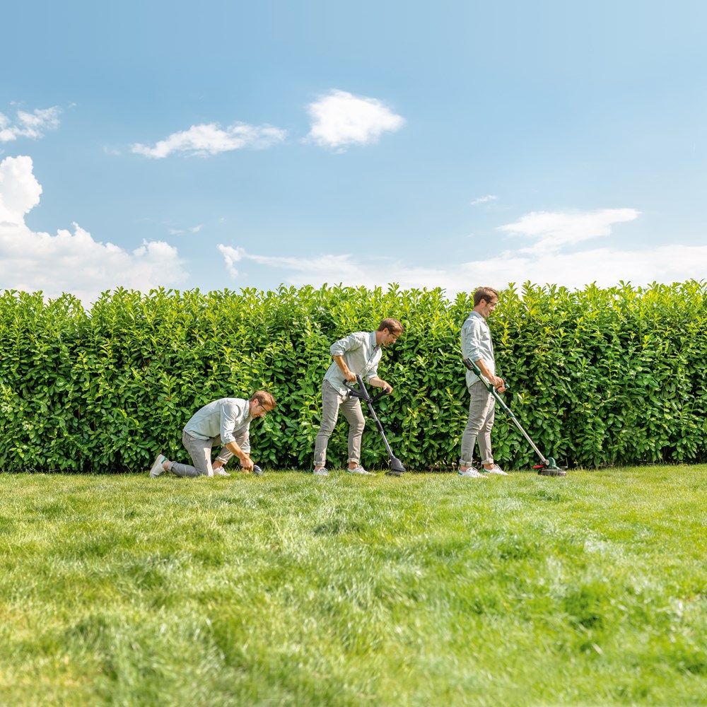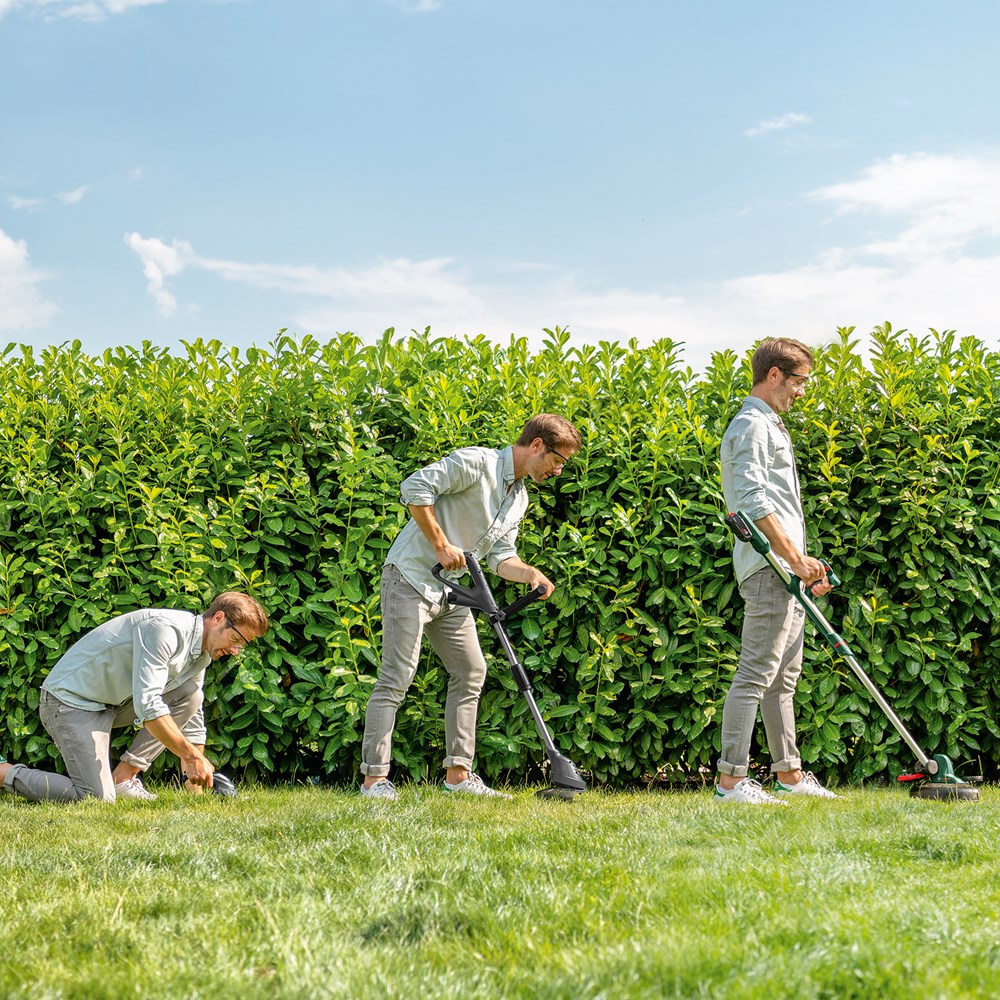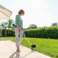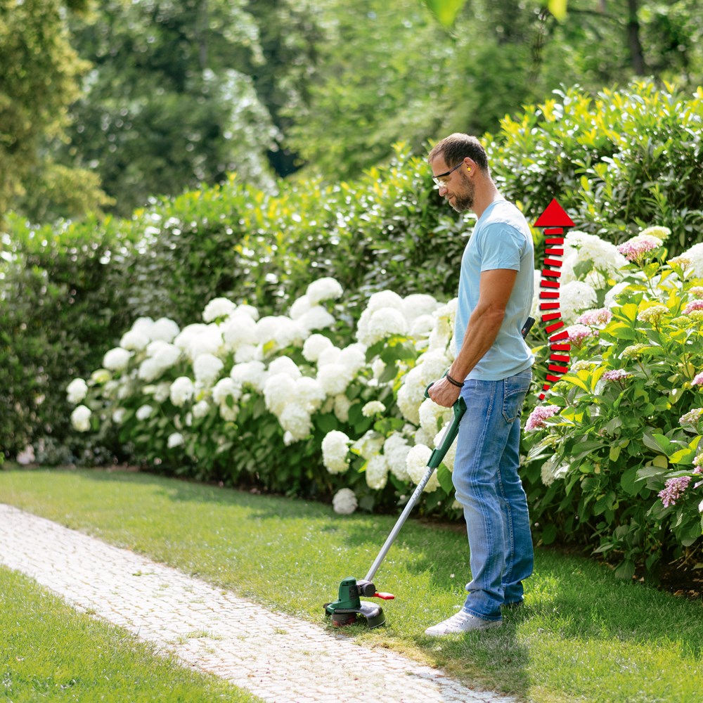 Brengt het plezier in tuinieren terug in uw handen De UniversalGrassCut 18V-260 is ontworpen voor moeiteloos werken in de tuin en beschikt over een ergonomische V-vormige handgreep met telescopische hoogteverstelling voor comfortabel hanteren in een natuurlijke houding. De IntelliFEED-functie voert automatisch de trimdraad toe, zodat onderbrekingen, bukken en tikken niet meer nodig zijn. De veelzijdige kop draait door middel van een voetschakelaar en draai van de handgreep om zo gemakkelijk te kunnen wisselen tussen de trim- en kantsnijfunctie. De plantenbeschermbeugel beschermt bloemen zachtjes bij het werken rond bloembedden. Met een volledig opgeladen accu kan de grastrimmer de graskanten van acht tennisbanen in één ruk snijden. Het gereedschap maakt deel uit van de POWER FOR ALL ALLIANCE. Eén accu kan een groot aantal machines/apparaten van verschillende merken laten werken.