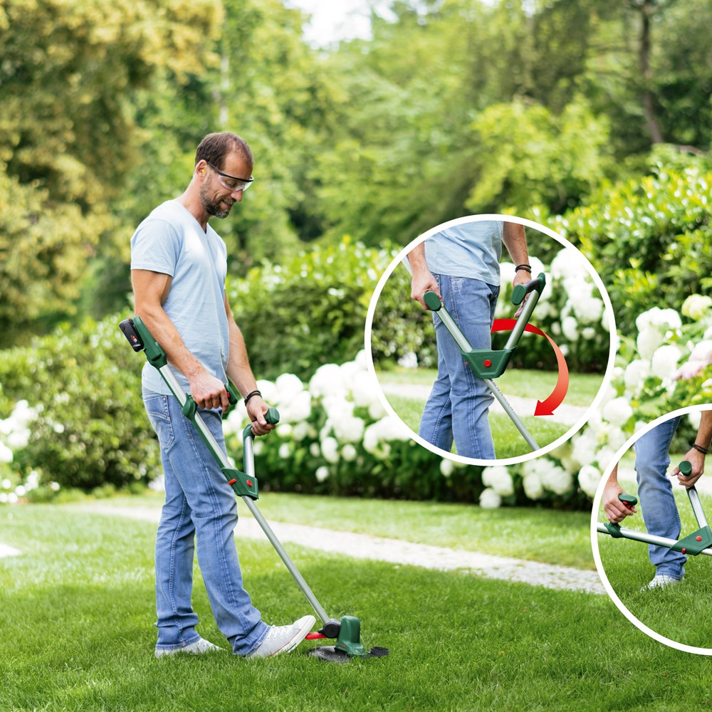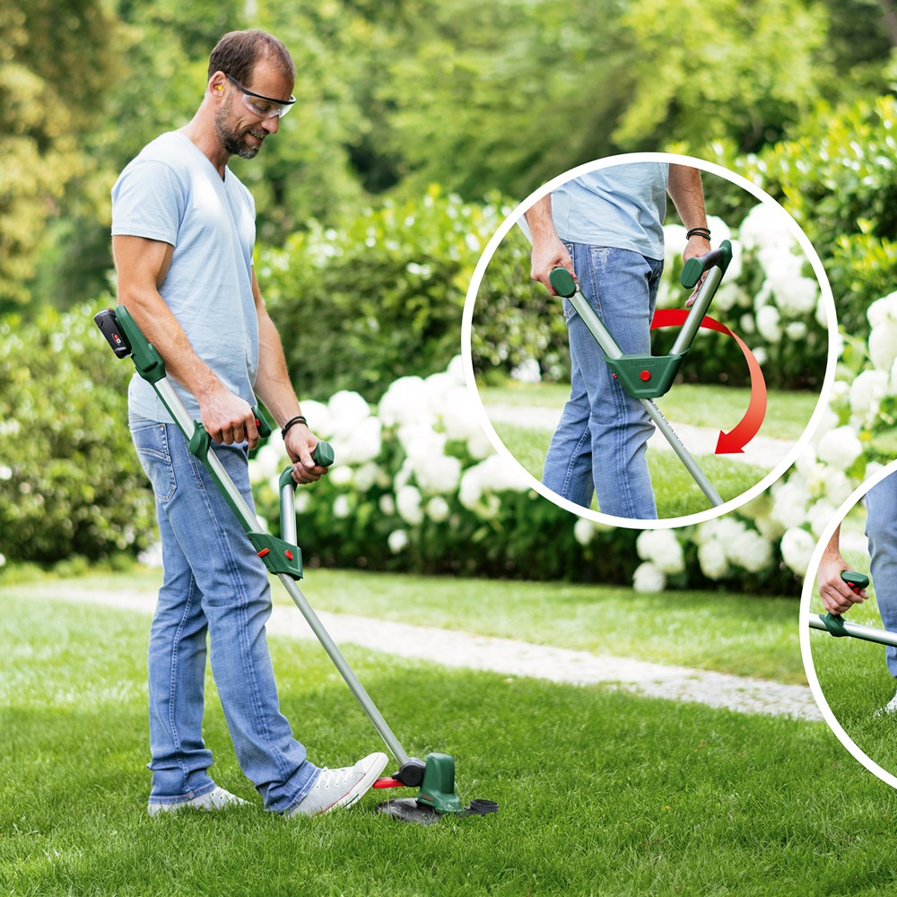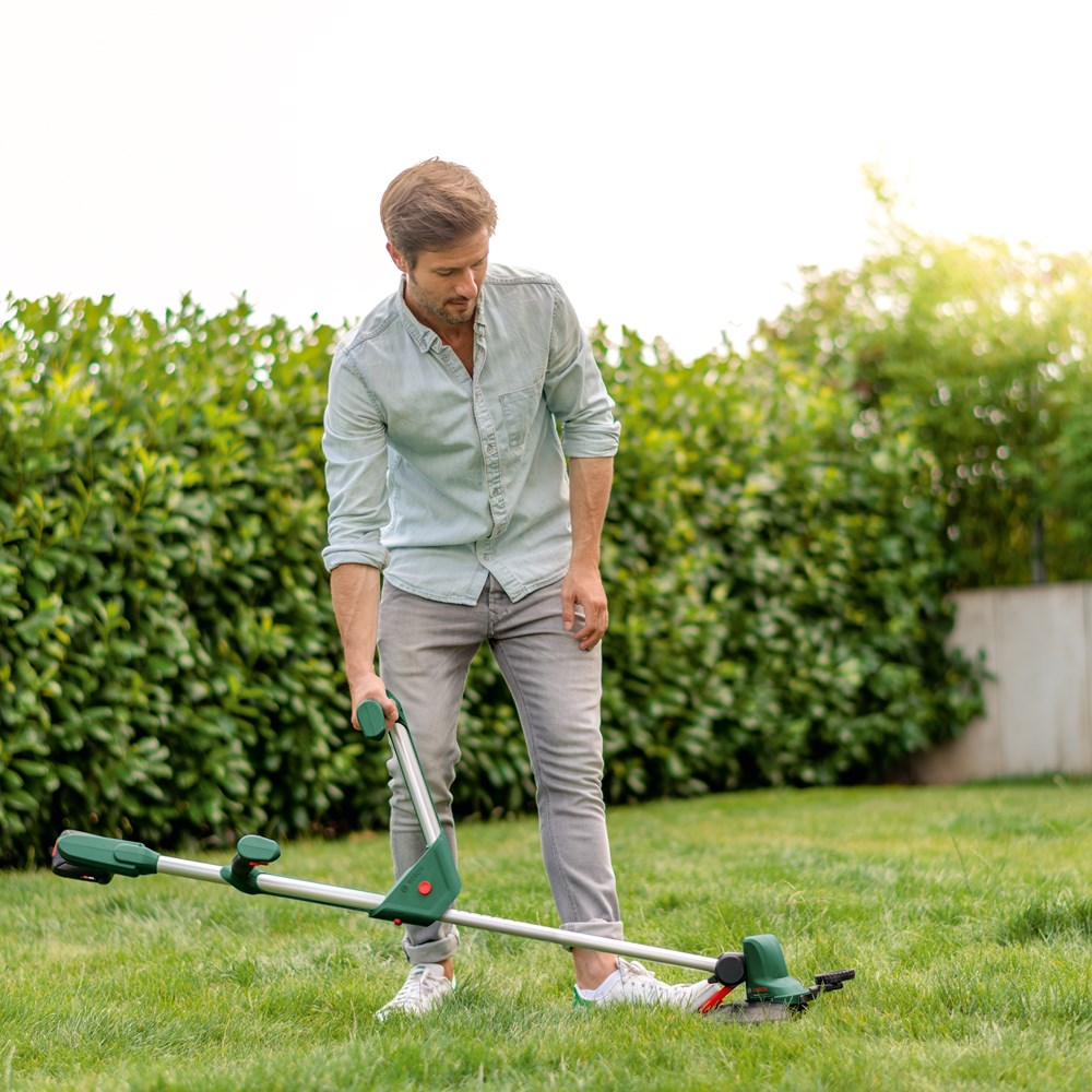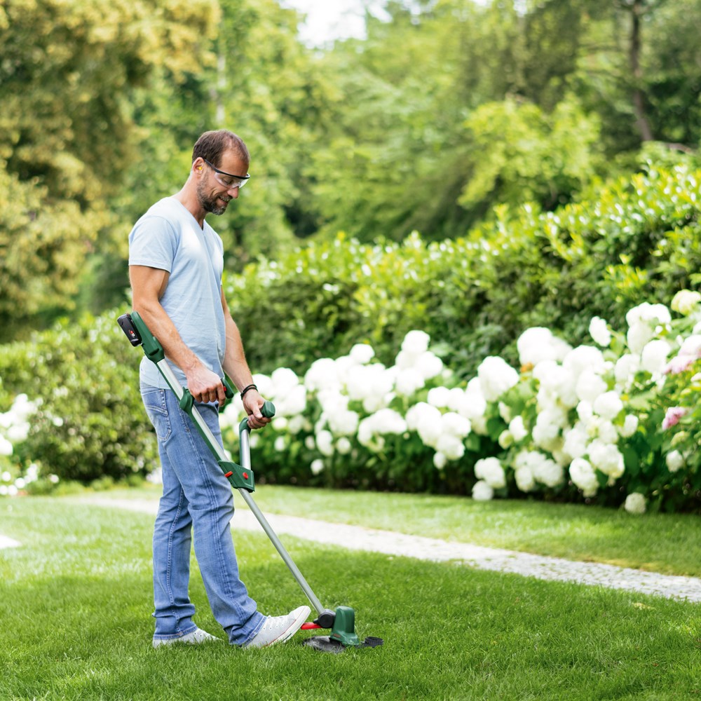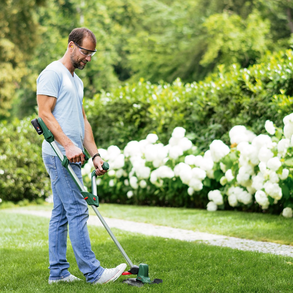 Brengt het plezier in tuinieren terug in uw handen De UniversalGrassCut 18V-260 is ontworpen voor moeiteloos werken in de tuin en beschikt over een ergonomische V-vormige handgreep met telescopische hoogteverstelling voor comfortabel hanteren in een natuurlijke houding. De IntelliFEED-functie voert automatisch de trimdraad toe, zodat onderbrekingen, bukken en tikken niet meer nodig zijn. De veelzijdige kop draait door middel van een voetschakelaar en draai van de handgreep om zo gemakkelijk te kunnen wisselen tussen de trim- en kantsnijfunctie. De plantenbeschermbeugel beschermt bloemen zachtjes bij het werken rond bloembedden. Met een volledig opgeladen accu kan de grastrimmer de graskanten van acht tennisbanen in één ruk snijden. Het gereedschap maakt deel uit van de POWER FOR ALL ALLIANCE. Eén accu kan een groot aantal machines/apparaten van verschillende merken laten werken.