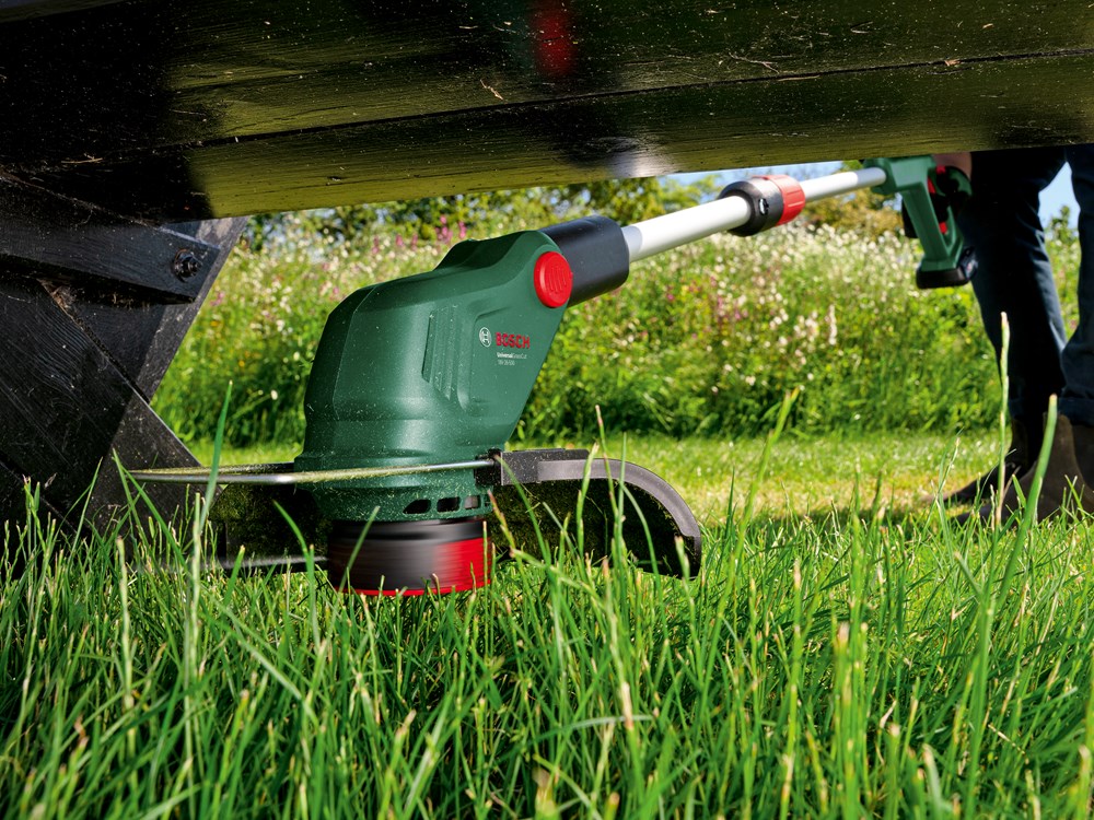 Blijf uw complexe tuingebied de baas en houd uw gazon netjes met de flexibele trimmer UniversalGrassCut 18V-26-500. Deze praktische en snoerloze helper pakt eenvoudig een groot aantal trim- en kantensnijklussen aan. Het lichte en ergonomische ontwerp maakt een beter comfort tijdens het trimmen mogelijk.