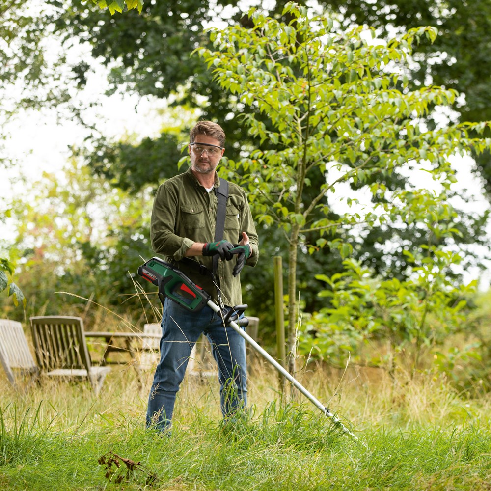 Snoerloze vrijheid, vermogen en duurzaamheid om je tuin onder controle te krijgen Met de AdvancedGrassCut 36V-33 op accu is het uit de weg ruimen van hoog gras, onkruid of brandnetels een fluitje van een cent dankzij borstelloos motorvermogen. Constant Electronic-technologie regelt automatisch het vermogen van de machine om zich aan te passen aan de klus, terwijl het toerental constant wordt gehouden. Intelligente Syneon Technology levert ofwel kracht of uithoudingsvermogen zoals nodig en een accustatusaanduiding houdt je direct op de hoogte van het oplaadniveau. Een ergonomisch ontwerp en eenvoudige wendbaarheid zorgen voor minder vermoeidheid bij langere trimklussen, terwijl een plantenbeschermbeugel kostbare bomen en planten beschermt om zonder zorgen te kunnen werken. Het gereedschap maakt deel uit van het 36V POWER FOR ALL-systeem. Eén accu kan worden gebruikt voor alle 36V POWER FOR ALL-gereedschappen.