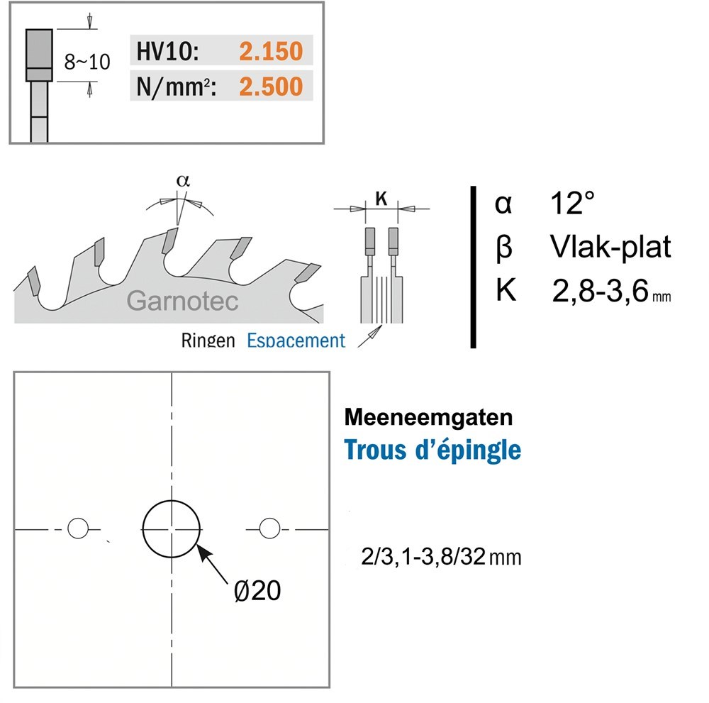 Contacteer onsCMT Artikelnummer: CT289.070.16H TWEE-DELIGE VOORRITSZAAG MET HARDMETALEN TANDEN
