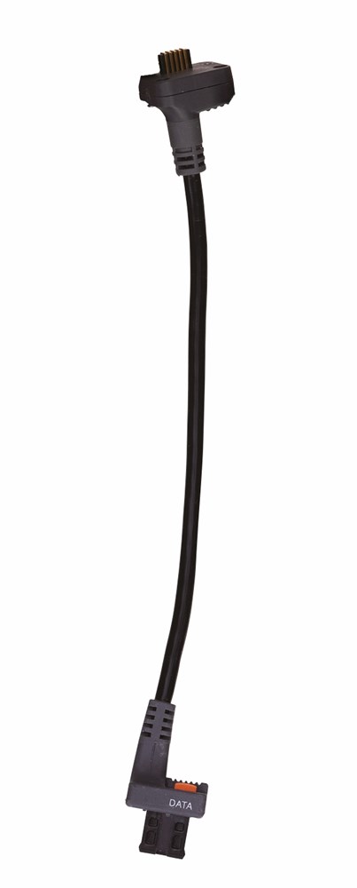 Een Mitutoyo U-WAVE SPC datakabel met dataknop, met connector (E) voor compatibele meetinstrumenten. Verbindt een meetinstrument voorzien van een data uitgang zoals getoond op de foto met een U-WAVE zender.