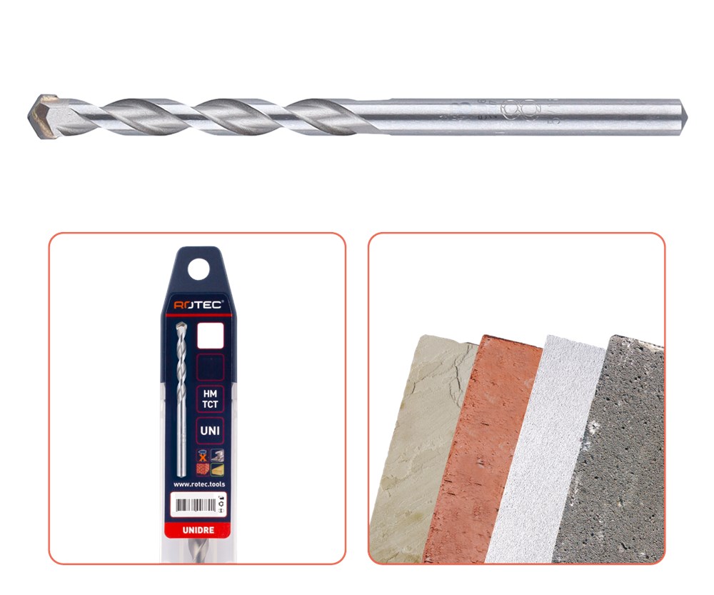 UNIDre - Multifunctionele boor met speciaal diamantgeslepen hardmetalen boorpunt. Alleen voor draaiende toepassing, niet kloppend. Ideaal voor accu-gereedschap, tot 40% meer boorgaten per accu-lading. Alle boren boven ø13 zijn standaard afgedraaid naar schacht ø13.