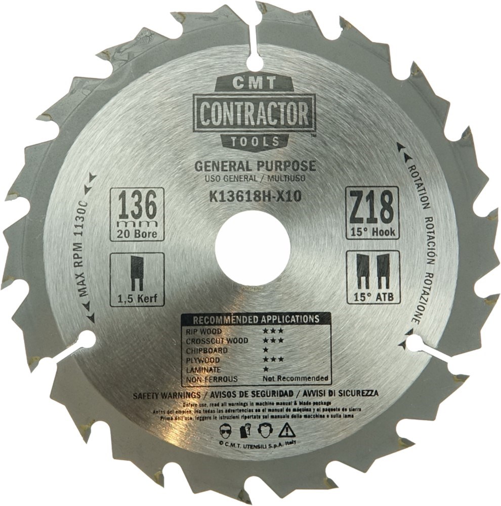 Contacteer onsContractor Artikelnummer: CTK13618H-X10 UNIVERSEEL CONTRACTOR ZAAG MET HARDMETALEN TANDEN