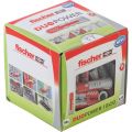 Contacteer onsDe fischer DuoPower heeft een zeer hoge bevestigingswaarde door de 2 componenten: De grijze component van kwalitatief hoogwaardig nylon activeert, afhankelijk van het bouwmateriaal, automatische het optimale werkingsprincipe (spreiden, tikken, knopen) voor het optimaal houvast. De expansievleugels van de rode component ondersteunen de betrouwbare spreiding en biedt extra veiligheid voor de grijze component. De schroef gewoon indraaien en tot slot goed „aantrekken“. De schroef niet de vast aandraaien. De bij de kop aangebrachte rand voorkomt, dat de plug in het boorgat glijdt.