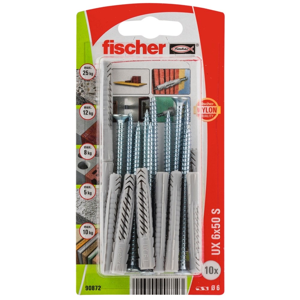 Contacteer onsDe fischer Universele plug UX is een kunststof plug van kwalitatief hoogwaardig nylon. De fischer Universele plug spreidt in massief materiaal en vormt een knoop in hol materiaal en plaatmateriaal, voor een optimale bevestiging. Daarom is de fischer UX altijd de juiste keuze – ook bij onbekend materiaal. In de versie zonder rand is de fischer Universele plug UX geschikt voor de doorsteekmontage. De meegeleverde schroeven zorgen voor een optimale bevestiging.