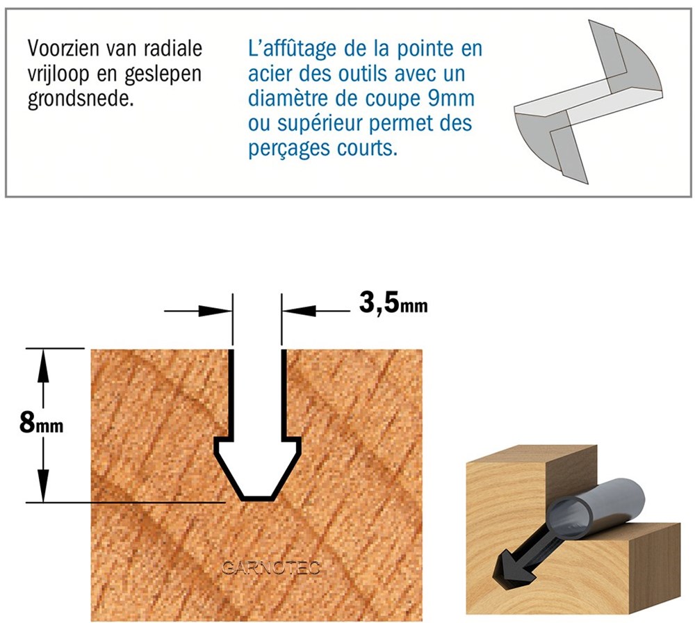 Contacteer onsV-groef frees (voor rubbere tochtstrip), HWM