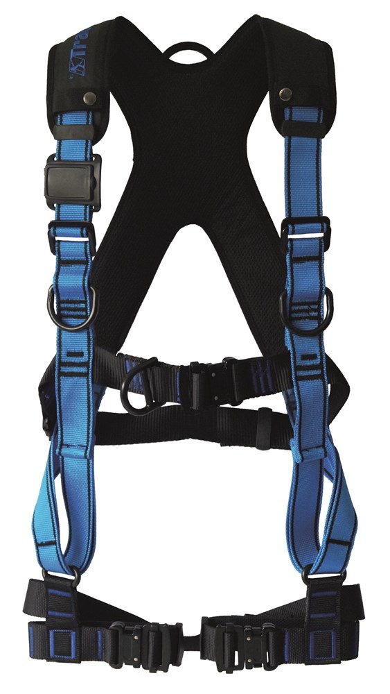 Contacteer onsLuxe harnas met X-pad rugbekleding en snelsluitingen. De harnassen moeten comfortabel zitten en zeker niet irriteren. Om dit te bereiken is een nieuw, lichtgewicht model harnas ontwikkeld met beter draagcomfort en grotere bewegingsvrijheid: veilig, comfortabele zit en ergonomisch. De ademende X-pad rugsteun reduceert de druk van de banden op de schouders en zorgt, in combinatie met de snelsluitingen, dat het harnas snel en eenvoudig aan te trekken is. Het harnas heeft 5 koppelingspunten, waaronder het unieke buik verankeringspunt. Het bewegingspunt op de rug is voorzien van een grote D-ring welke het openen van een haak voorkomt indien deze niet correct is aangesloten. Standaard geleverd in maat M/L, grotere maten op aanvraag. Voldoet aan EN 361