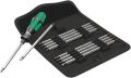 11-delige Vario-set met handhouder en klingen. In handig riemetui waarin het gereedschap veilig en beschermd kan worden opgeborgen en tegelijk direct bij de hand is. De Kraftform Plus-greep van de steel zorgt ervoor dat u prettig en ergonomisch verantwoord kunt werken en blaren en schuurplekken kunt voorkomen. Harde gripzones voor een hoge werksnelheid, zachte gripzones voor een hoge draaimomentoverdracht. Zeskantige wegrolbescherming verhindert telkens wegrollen op de werkplek. Dankzij de geïntegreerde zeskant-sleutelhulp kunnen met steek- of ringsleutels hogere draaimomenten worden uitgeoefend. De dubbele klingen worden gemaakt van hoogwaardig bit-materiaal en gaan dan ook zeer lang mee. De Wera Black Point-punt van de klingen biedt een hoge pasnauwkeurigheid en extra corrosiebescherming.