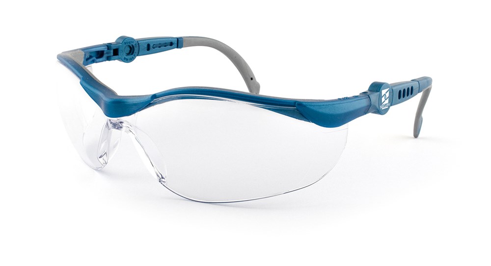 Contacteer onsVeiligheidsbril met uit 2-componenten vervaardigd montuur. Instelbare veerlengte en veerhellingshoek.Krasvrije, antidamp, polycarbonaat lenzen. Uiteinden van flexibele rubberen veren zorgen voor een vederlicht en optimaal comfort.