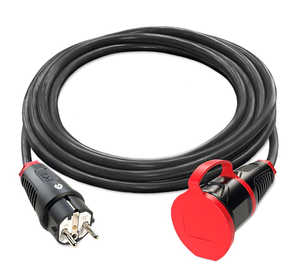 Contacteer onsVerlengkabel met vervangbare stekker en stopcontact De neopreen verlengkabel is geschikt voor elke werf. En dankzij het klapdeksel komt er geen stof in het stopcontact. Kenmerken: · IP 44 · CE