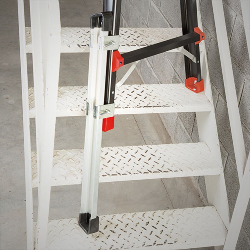 Platte horizontale sporten met groot antislipprofiel waarborgen het stacomfort en een uitstekende stabiliteit wordt verzekerd door de uitgebogen bomen.