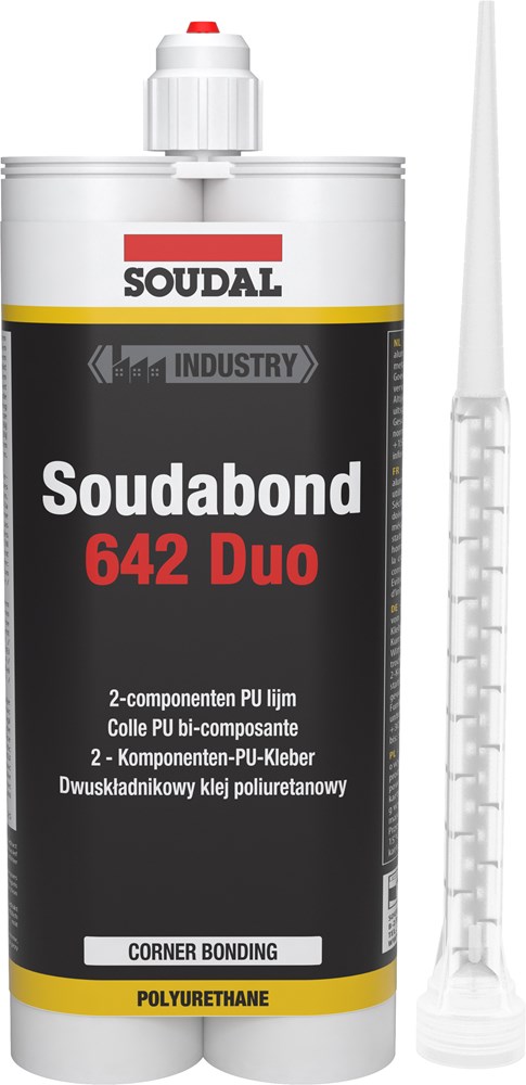 Contacteer onsSoudabond 642 Duo is een 2-componenten PU lijm, geschikt voor de verlijming van aluminium hoekprofielen in geëxtrudeerde raamprofielen. Tevens geschikt voor de verlijming van metalen in andere toepassingen. Hoge eindsterkte – Snelle uitharding – Gebruiksvriendelijk – Goede weersbestendigheid
