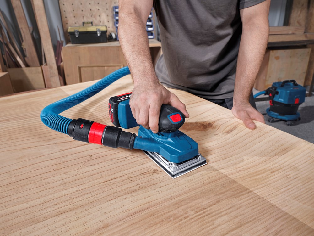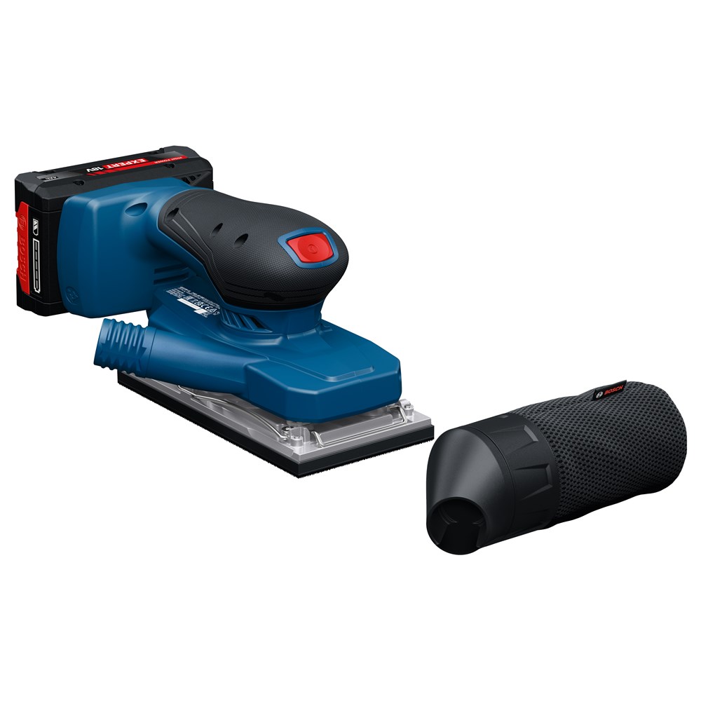 De PRO GSS 18V-18 op accu is ontworpen voor optimale controle dankzij de geringe hoogte van max. 118 mm en uitstekende balans van de machine. Met de lage trillingswaarde tot 3,5 m/s2 kan er langere tijd worden gewerkt zonder moe te worden of dat de handen gevoelloos worden. Deze schuurmachine wordt geleverd met een efficiënte oplossing voor stofmanagement met een hoge stofopname van 85% en eenvoudige stofafvoer.