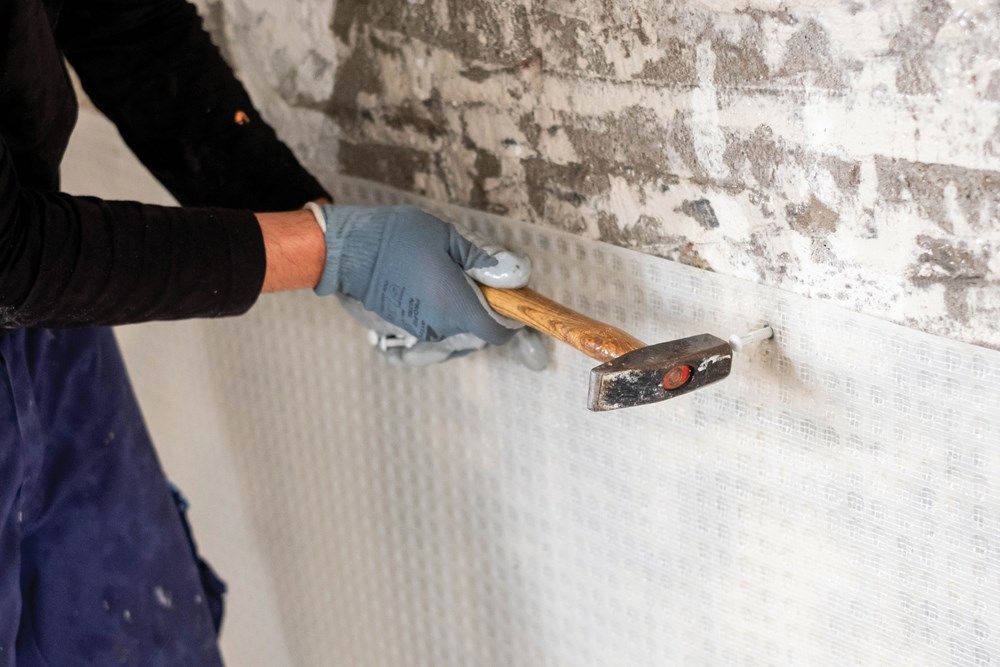 Noppenmembraan tegen migrerend zout bij binnenmuren.