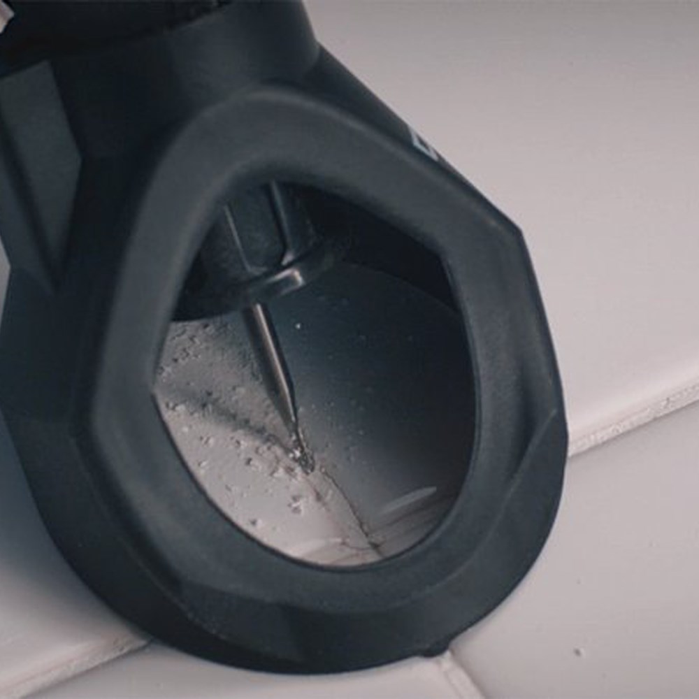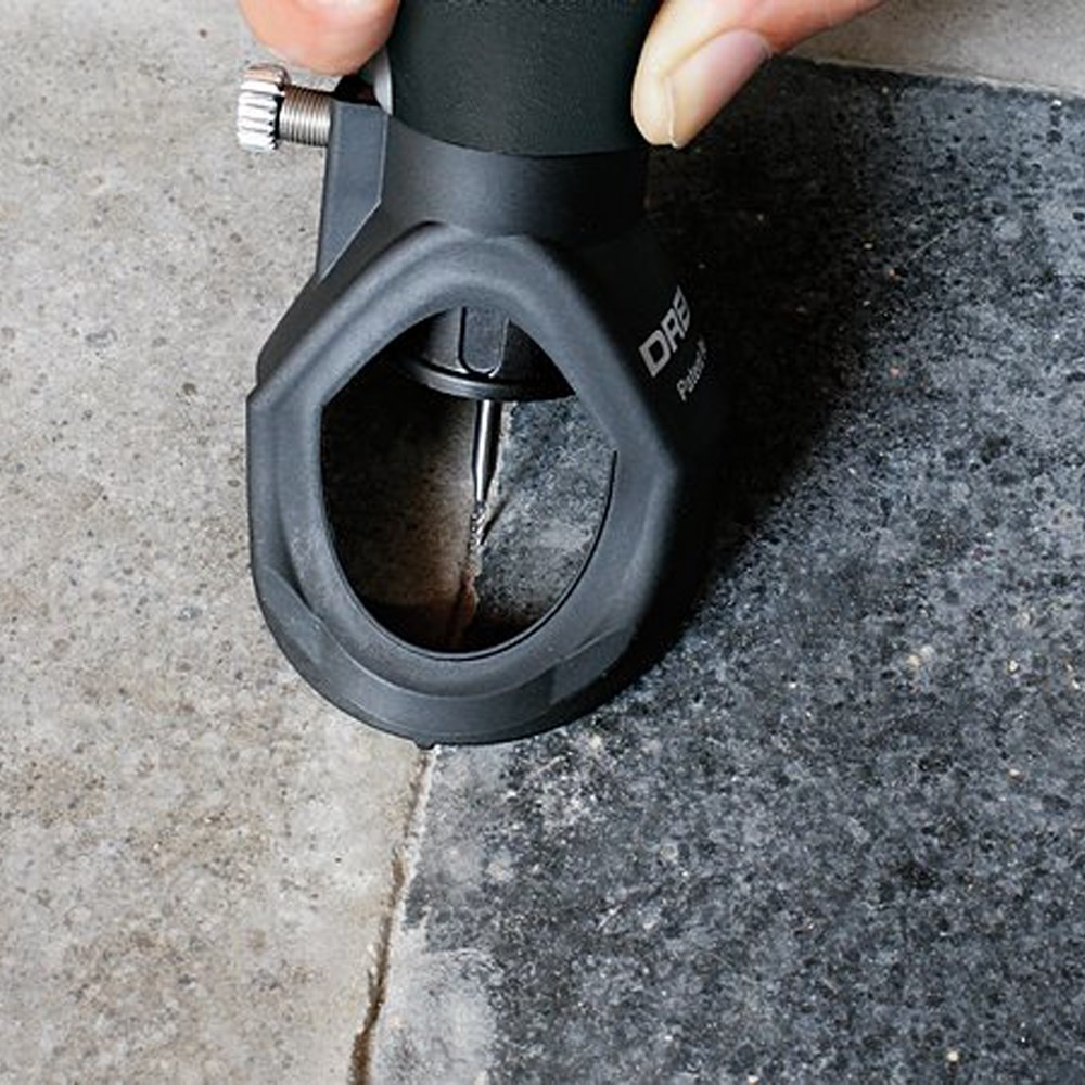 "Verwijder de neuskap van je Dremel multigereedschap, bevestig het accessoire van jouw keuze en draai dit vast, schroef de snijgeleider erop en stel deze op een diepte tot 13 mm in. Gebruik altijd beide handen om je Dremel multigereedschap langs de voeg te trekken, waarbij je door de grote vensters uitstekend zicht op je snijlijn hebt om de voeg netjes met maximale veiligheid te verwijderen.