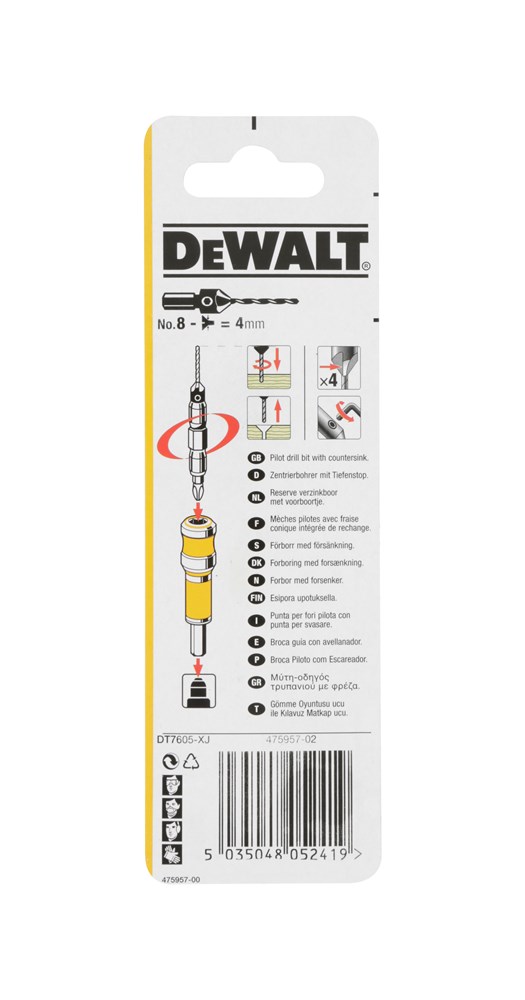 Contacteer onsDeWALT Artikelnummer: DT7605-XJ VOORBOOR EN VERZINKBOOR. MAAT 8 MET 4 SNIJKANTEN