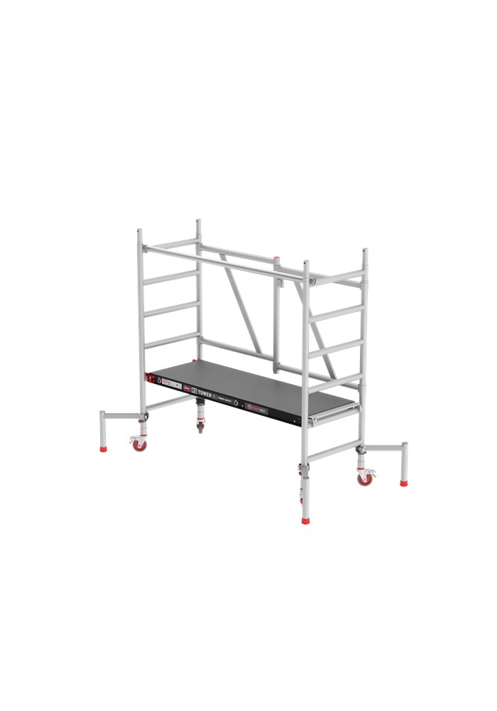 RS TOWER 54 Kamersteiger opvouwbaar. Compacte rolsteiger met doorbouw mogelijkheden De RS TOWER 54 is een handige kamersteiger. Geschikt voor buiten. Ideaal voor binnen door zijn compacte formaat. Wil je ooit hoger komen? Het systeem is uit te breiden met componenten uit de RS TOWER 5-serie. Zo kun je deze kamersteiger zelfs eenvoudig uitbouwen tot een werkhoogte van 9.80 meter.