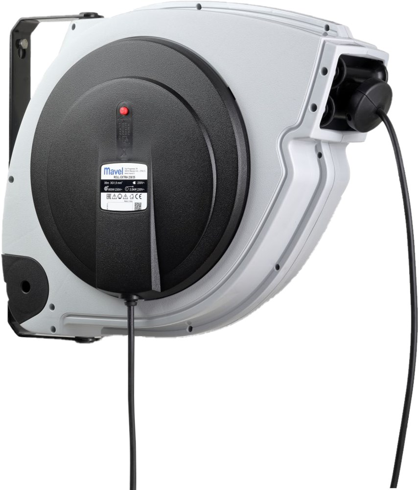 Contacteer onsGesloten slanghaspel in kunststof behuizing met 30m elektrisch snoer van 5x1,5 mm². Maximaal aansluitvermogen van 3000 Watt (haspel afgerold)